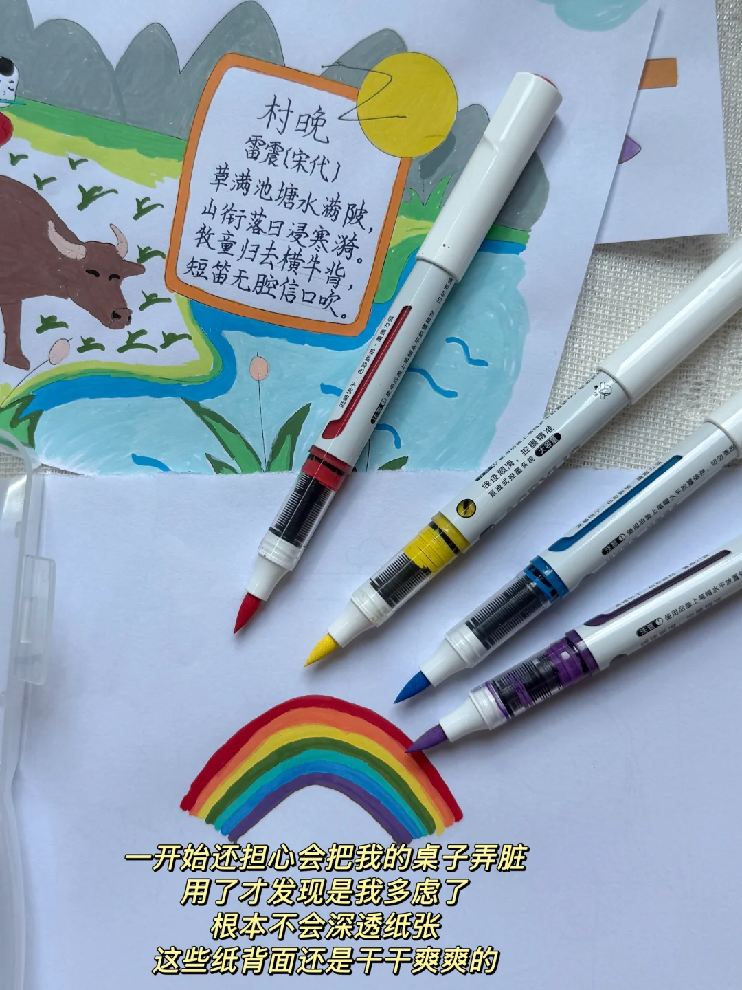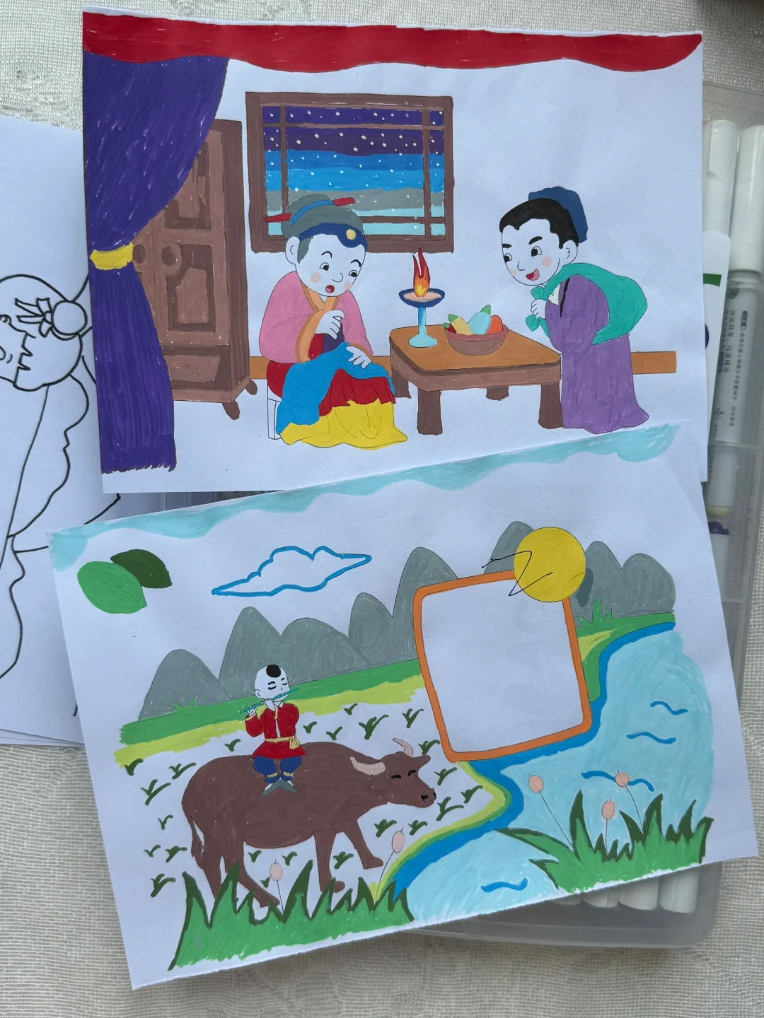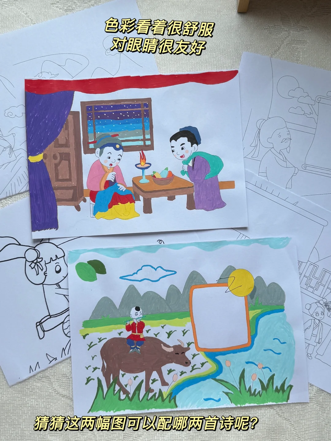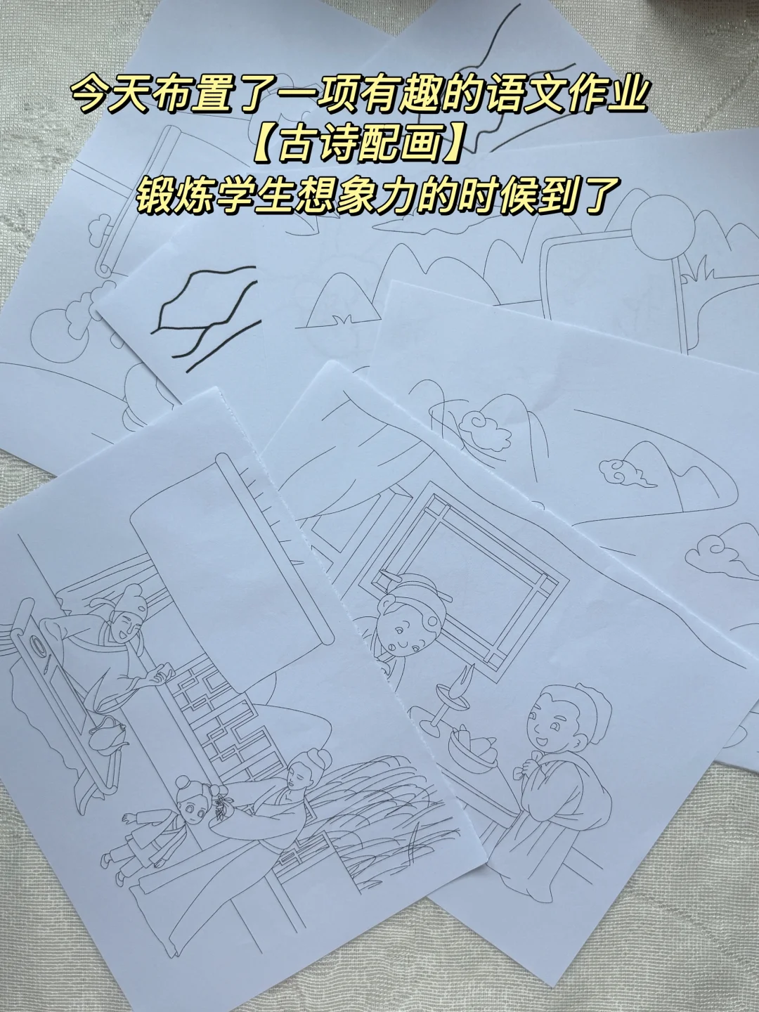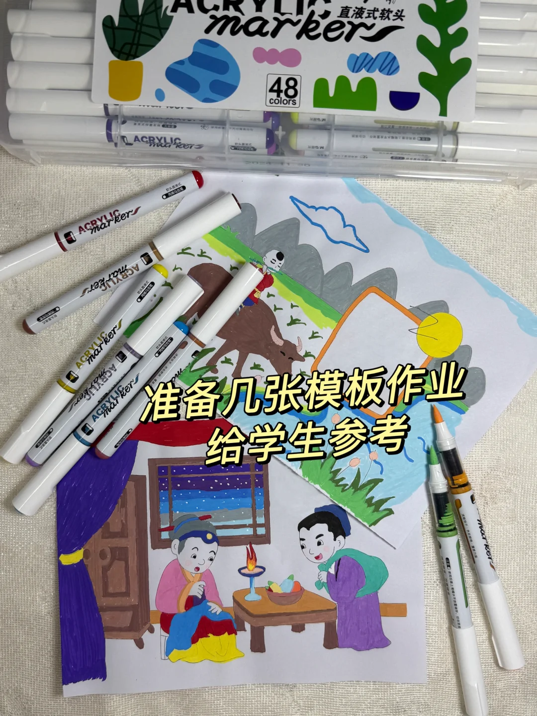 [哇R]这周末打算给学生布置不一样的语文作业——古诗词配画🎨。为了让他们完成得更好,我就出了几份模版,用上了我在京东新买的晨光直液式马克笔✍️。