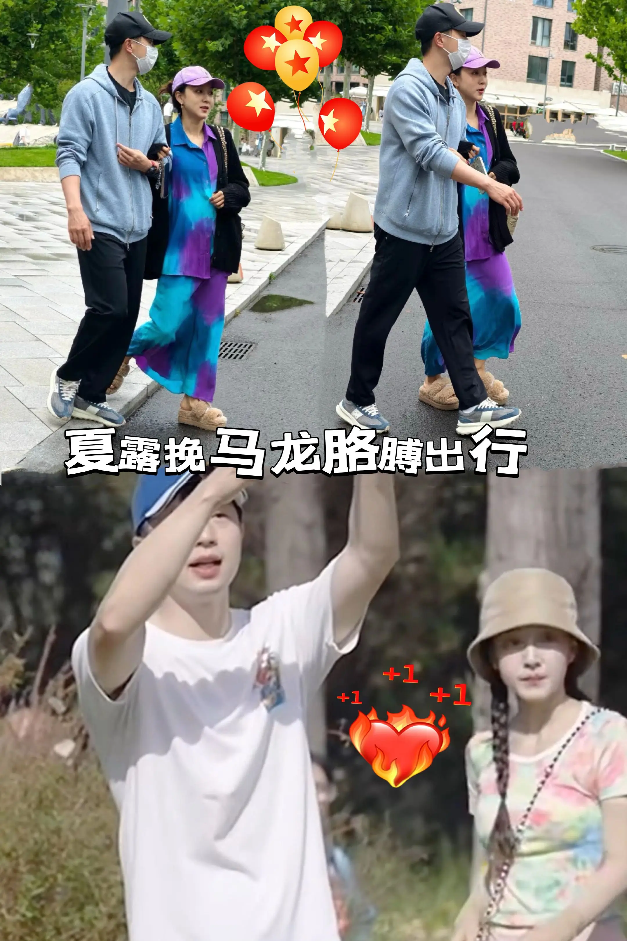 夏露挽马龙胳膊出行,夫妻俩好恩爱。马龙夫妻又被偶遇了,夏露穿了一身印花...
