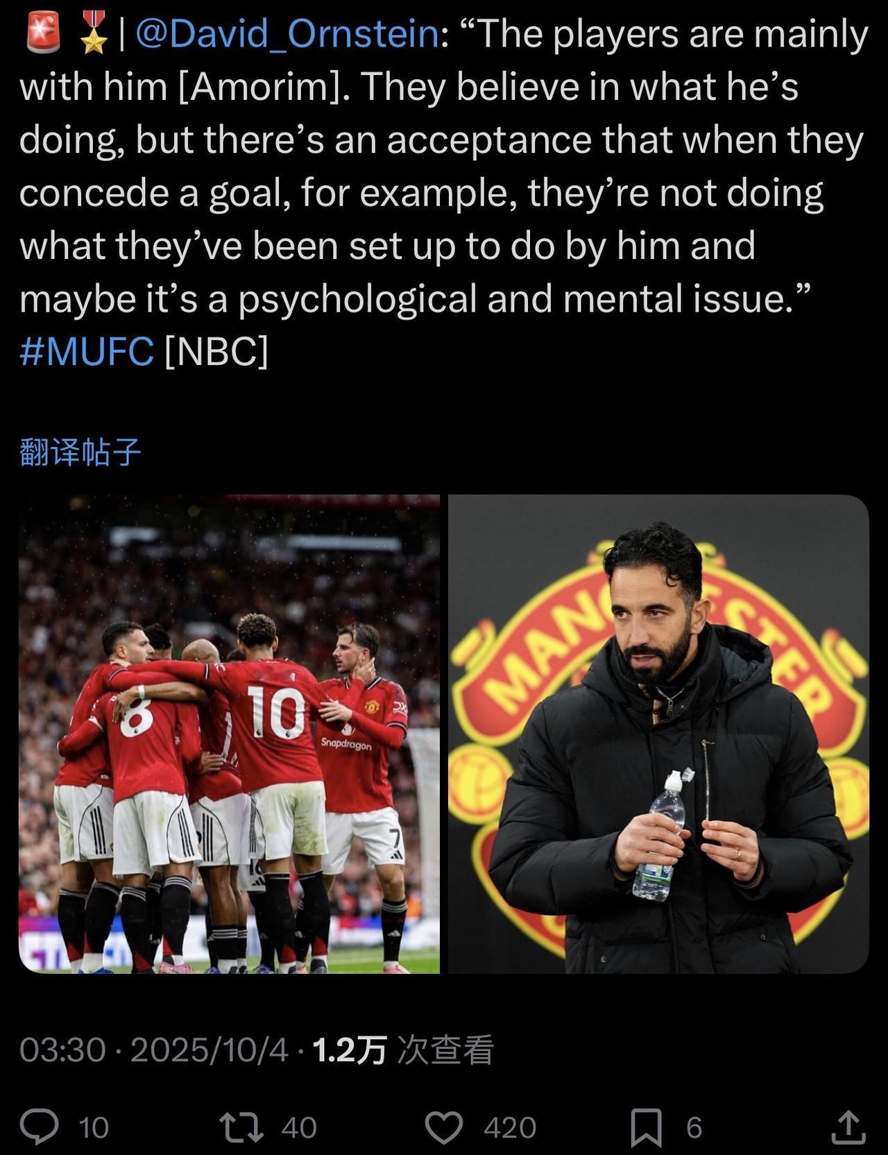 曼联其实大家在分析曼联问题的时候,思路都差不多。比如此前我说过,阿莫里姆不是一