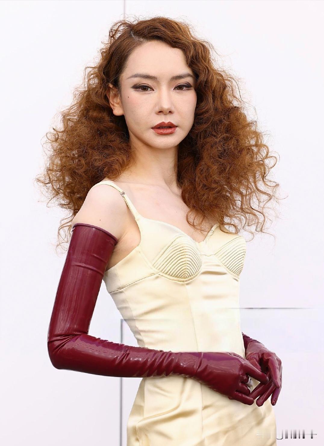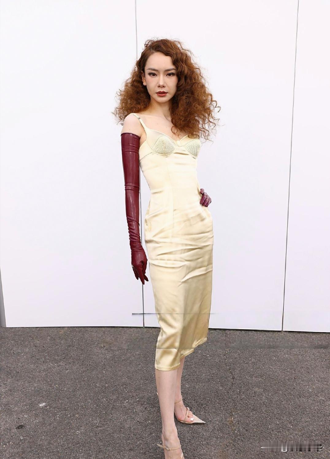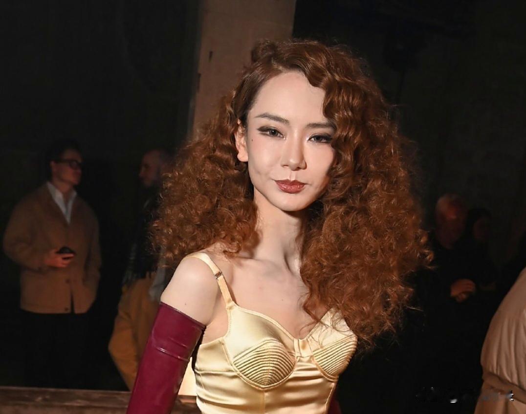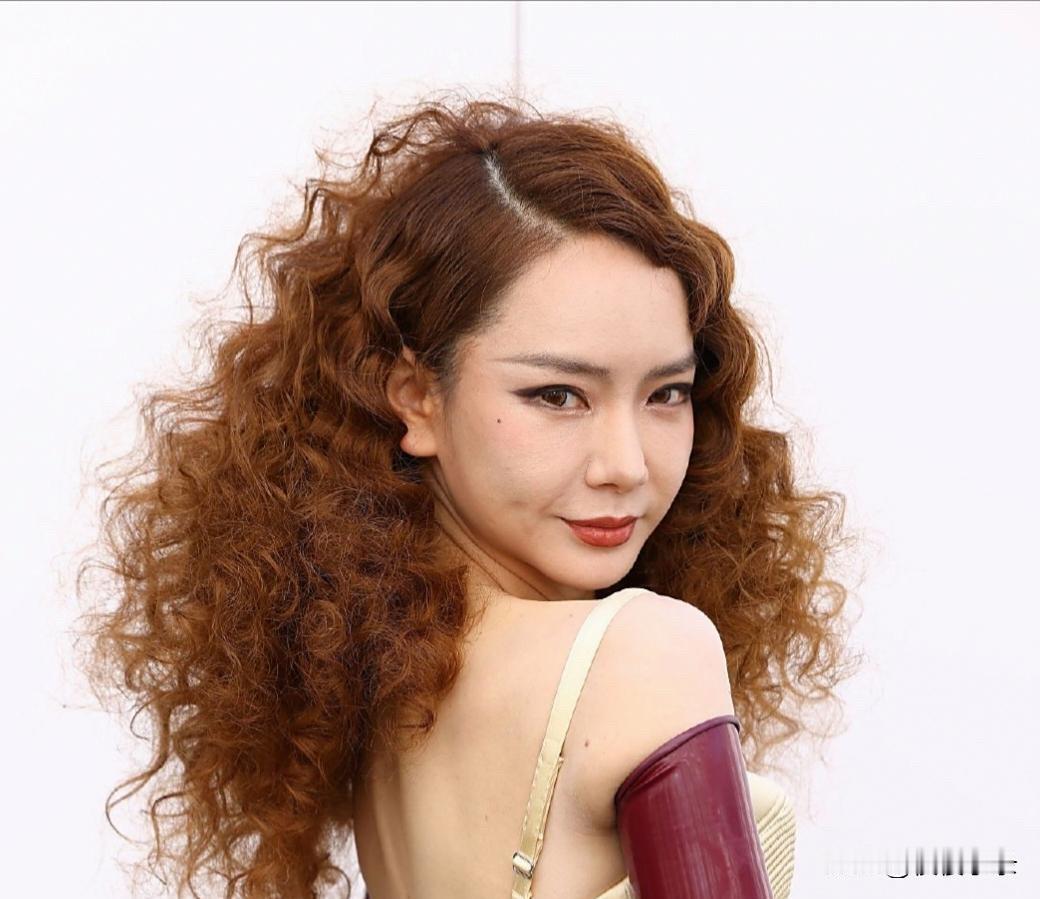 40岁戚薇参加巴黎时装周,这身造型实在是太可怕了,脸部医美过度,发面非常严重,看