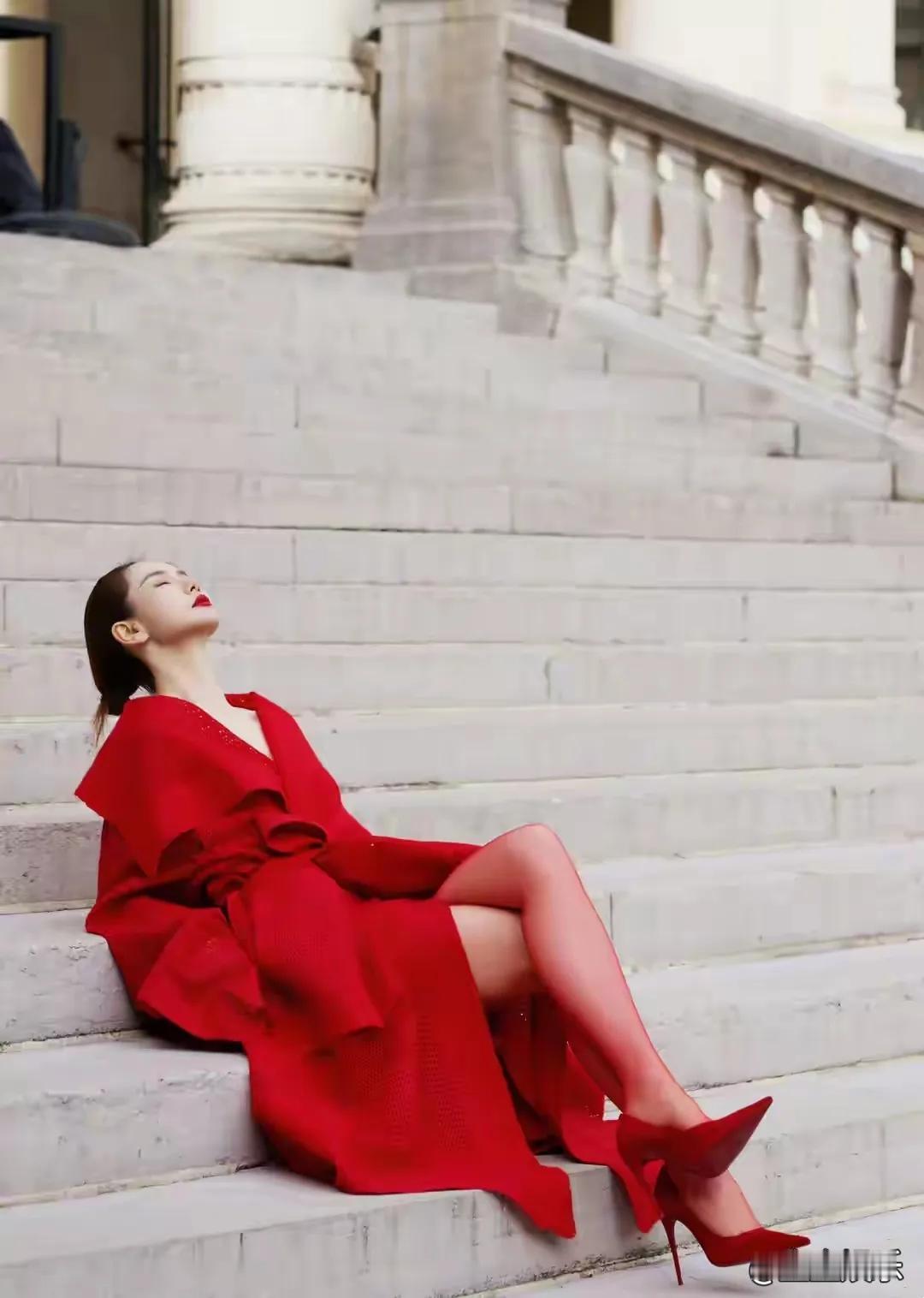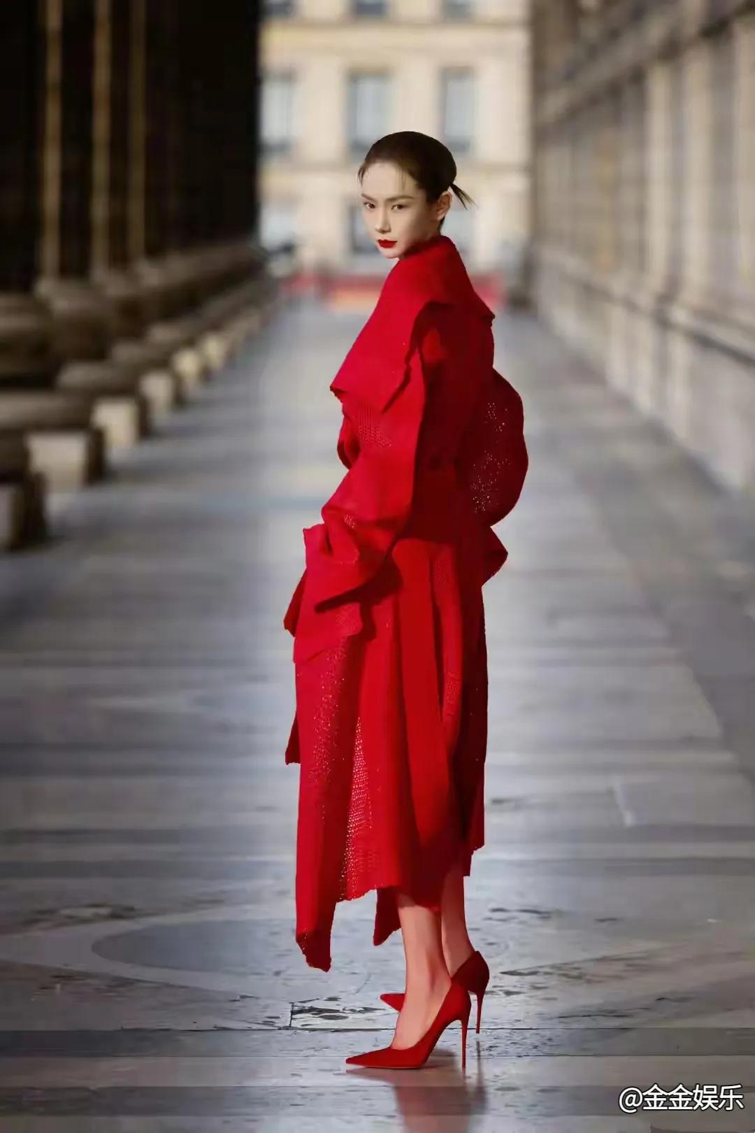 巴黎时装周的镁光灯下,戚薇以一袭酒红色皮质风衣搭配同色系漆皮长袜惊艳亮相,将“魅
