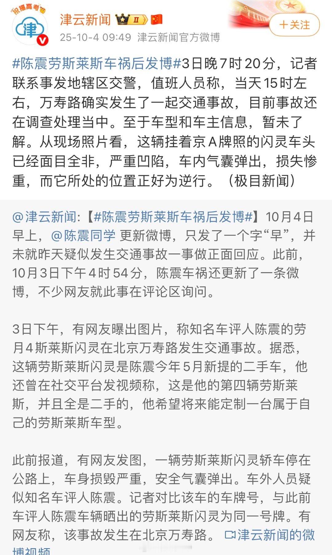 陈震劳斯莱斯车祸后发博陈震相关媒体报道,划重点,蹲个官方后续[喵喵]
