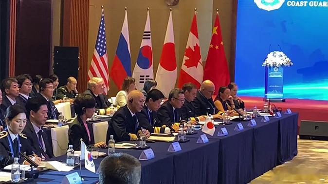 北太平洋海岸警备执法机构论坛上海年会,日本海保视角。图三为海保代表发言。
