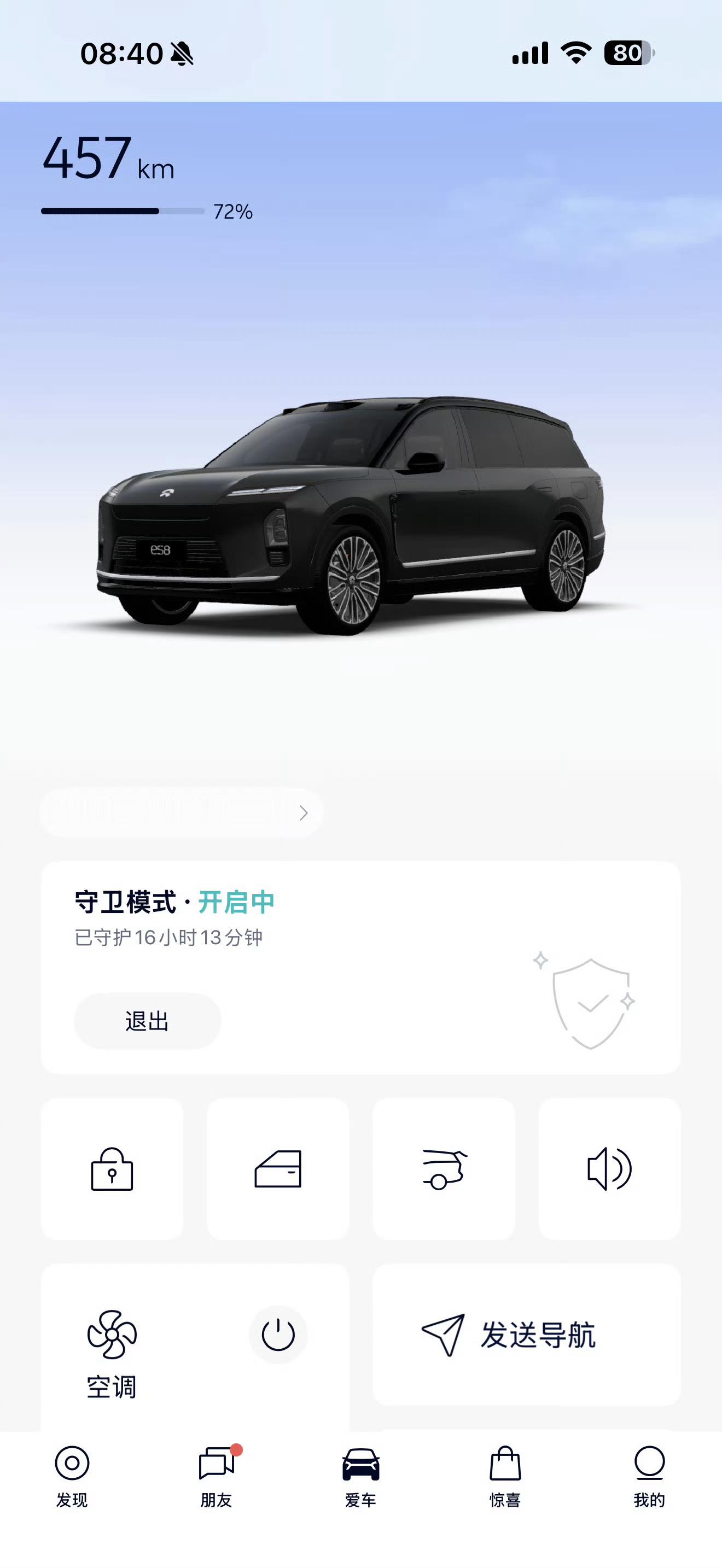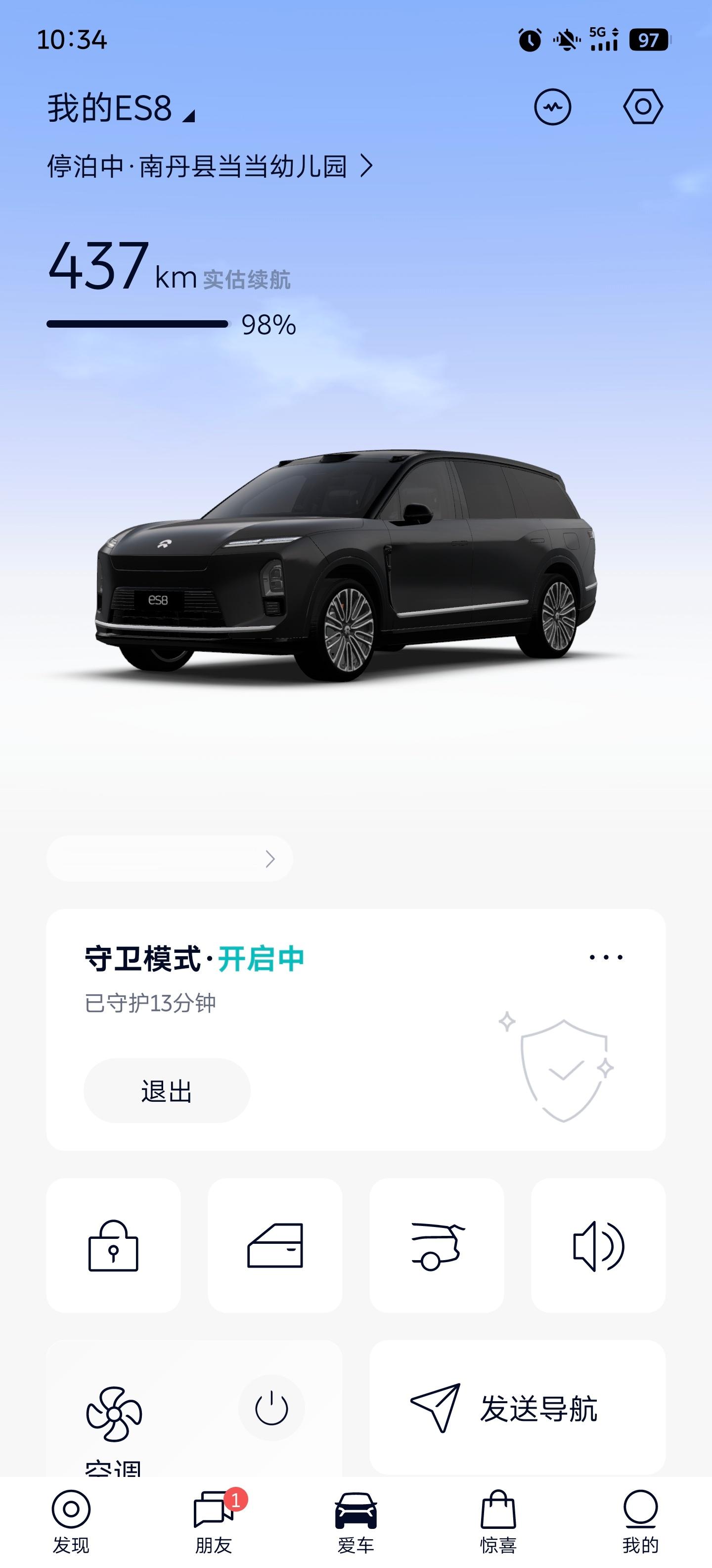 es8的守卫模式电耗极地,监控画面清晰度极高。我昨晚438km,今早437km。现在丢在车位出来吃早饭,继续让他守卫我的爱车。