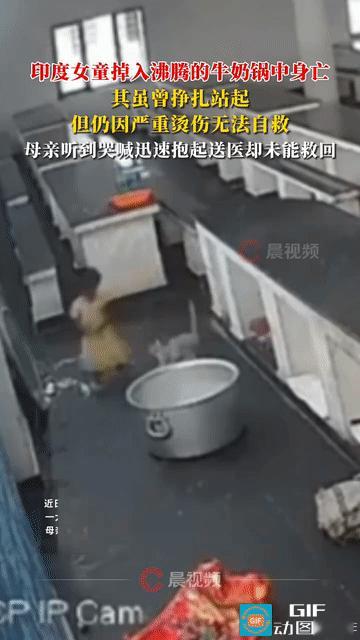 太让人揪心了!印度一小女孩在与小猫玩耍时,不慎掉入滚烫的牛奶锅中,瞬间被烫的哇哇