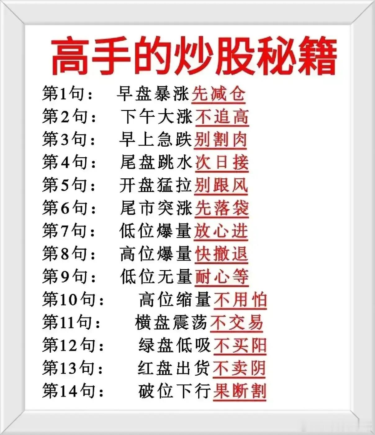 高手的炒股秘籍(14条实战口诀)