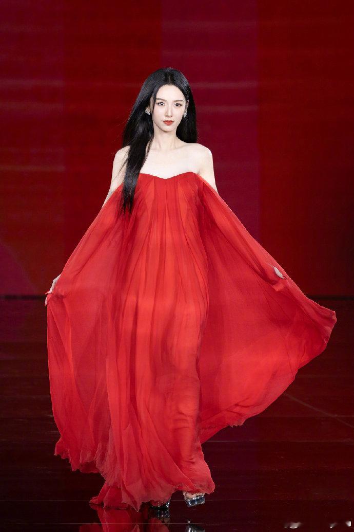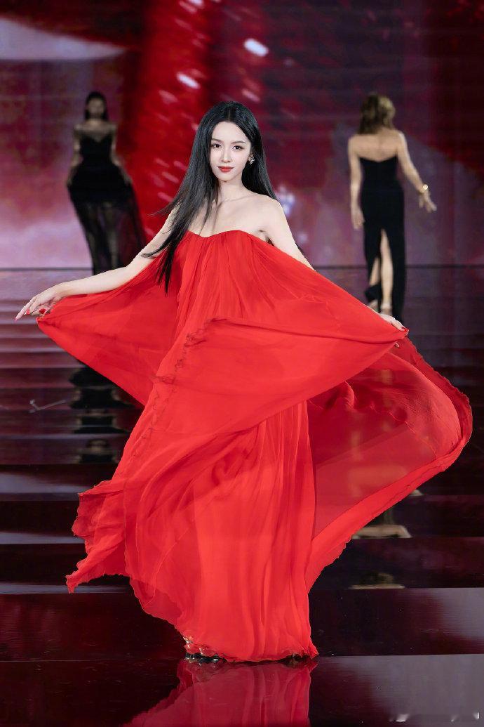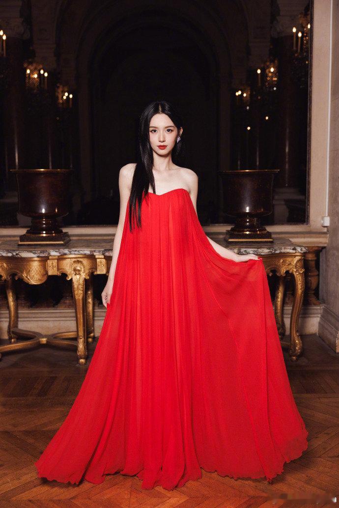 周也首次亮相巴黎时装周舞台,一袭红色高定裙搭配璀璨珠宝,“东方红玫瑰”造型一出场