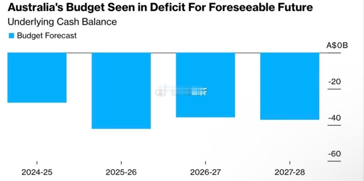 澳大利亚国库部警告称,尽管澳大利亚目前实现了通胀受控、失业率维持在4.1%低位等显著成果,但澳大利亚仍面临三大“严峻现实”:预算不可持续、经济生产率不足、以及两者均缺乏抵御外部冲击的能力。在预算方面,虽然政府首个任期内有两次盈余,但这主要得益于大宗商品价格飙升,由于大宗商品红利消退及结构性支出压力,预计未来四年(2024-2028财年)年度赤字将在350亿至450亿澳元之间徘徊;在经济方面,核心症结在于生产率增长乏力,这已导致该国人均经济产出近年持续下滑。