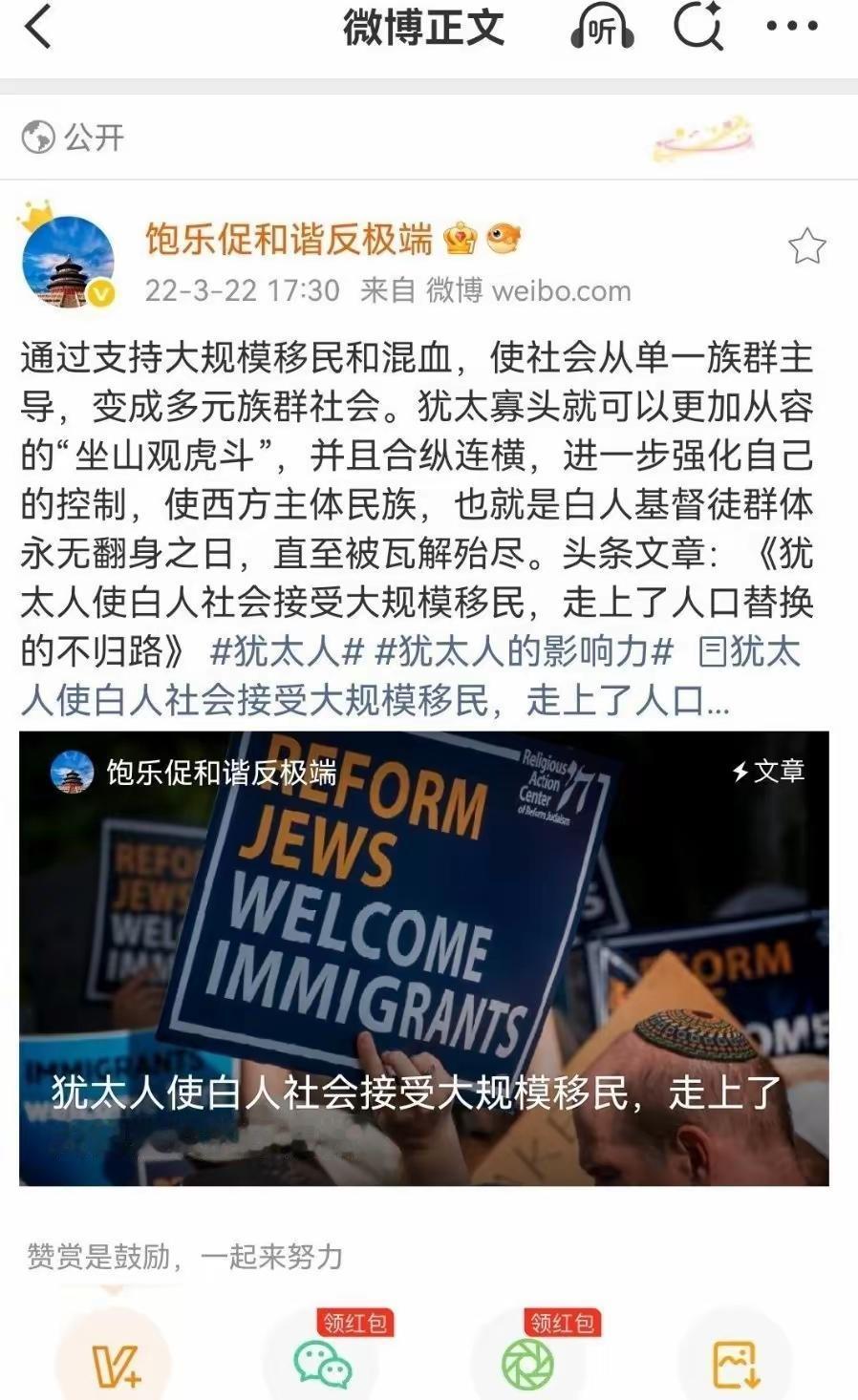 汉族超话 通过支持大规模移民和混血,使社会从单一族群主导,变成多元族群社会。鱿寡头就可以更加从容的“坐山观虎斗”… 网友评论: 对于资本来说,国家、民族、文化、价值观、甚至性别分化再分化才是最安全的,混乱再混乱才是最得利的。 因为犹太人少,要保持血统纯洁否则消散,分化部族强大的敌人就让得敌人分散。相对白人人数,我们华人是少的,地盘也是少的。 移民就是当我们强的时候分我们的劳动成果,当我们弱的时候种族屠杀我们的人!历史上一直如此! 异族社会,一盘散沙、各个种族之间利益诉求不同,必然导致纷争矛盾,没有凝聚力。