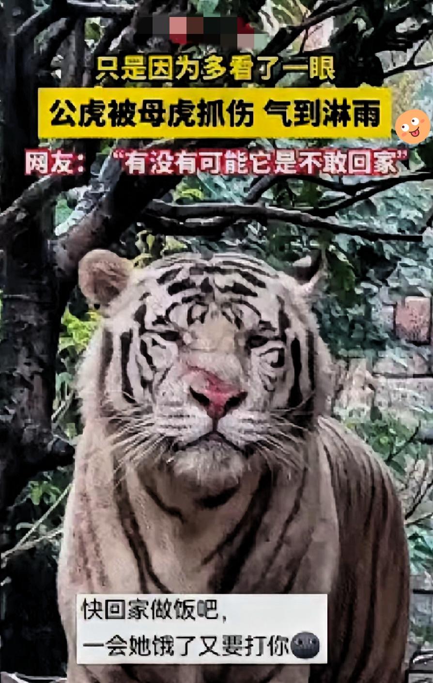 河南郑州一景区突然下暴雨,而一只公老虎却站在雨中一动不动,众人纳闷了,走近前仔细一看:原来是公老虎脸上有一脸抓痕[捂脸][捂脸][捂脸] 人家满脸抓痕站在暴雨里,一动也不动,饲养员怎么喊都喊不回,它这哪里是怕“母老虎”,分明是王者的尊严碎了一地的倔强。[呲牙][呲牙] 都说老虎是独居猛兽,领地意识强得很,可川川这模样,倒像极了吵架输了怄气的普通人。 伤口疼是小事,自尊受挫才是真的,不然咋会连零食玩具都哄不好呢。 别光觉得它可爱,这背后藏着的其实是所有“好面子”的人的缩影——宁愿硬扛风雨,也不愿让人看见自己的狼狈。 动物的情绪从来都不简单,川川的“淋雨抗议”,不过是用最直接的方式消化委屈。 那些说它“emo”的网友,大概都在它身上看到过自己吧? 毕竟谁没为点小事钻过牛角尖,宁愿独自硬扛也不肯低头呢。老虎 公园老虎
