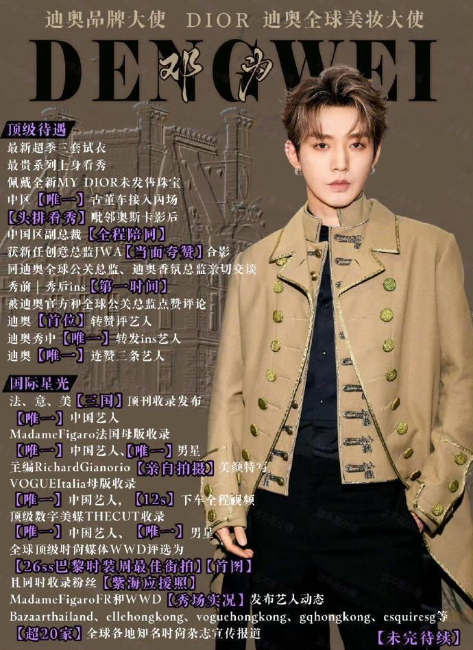 邓为DIOR大秀排面,谁来懂一下这个邓为巴黎时装周迪奥大秀战绩,满分帅感的古堡王子这次真的是闪耀时装周啦~​​​