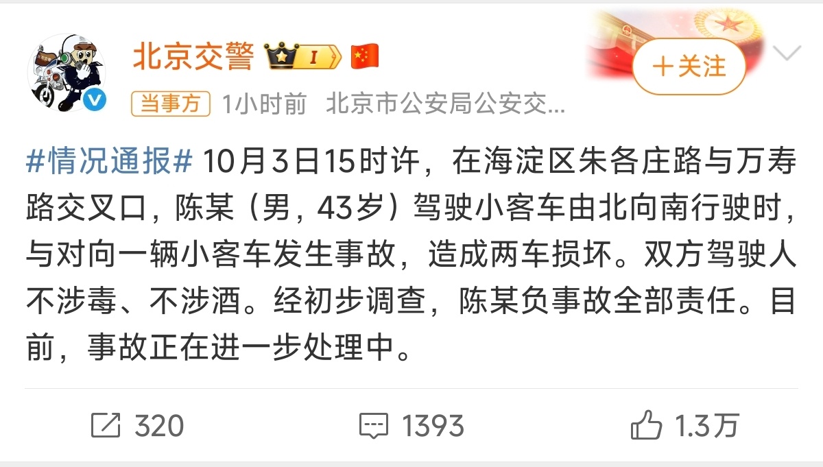 陈震负事故全部责任