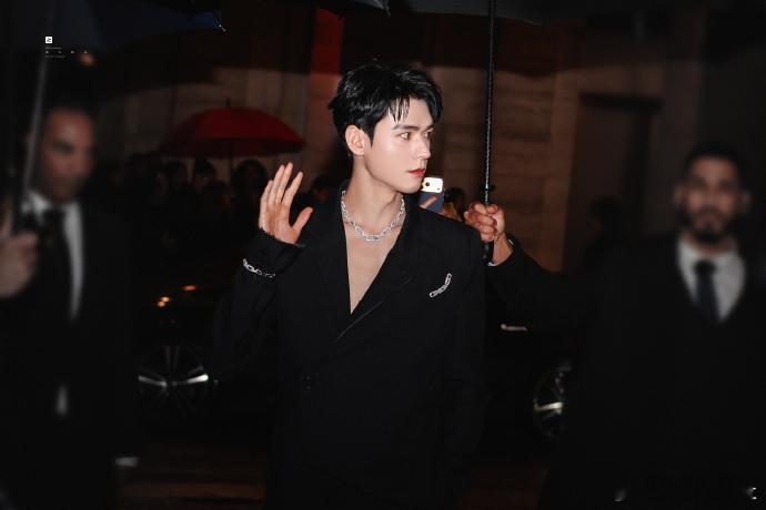 龚俊神图又上新了巴黎时装周雨夜的龚俊太会穿了,黑西装衬得身形挺拔,银链点缀更显