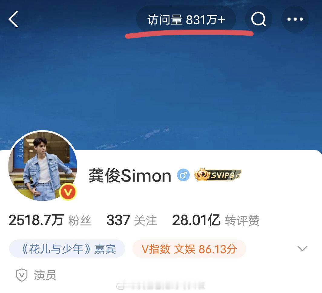 龚俊微博主页访问量831万+,花少7是不是爆了?