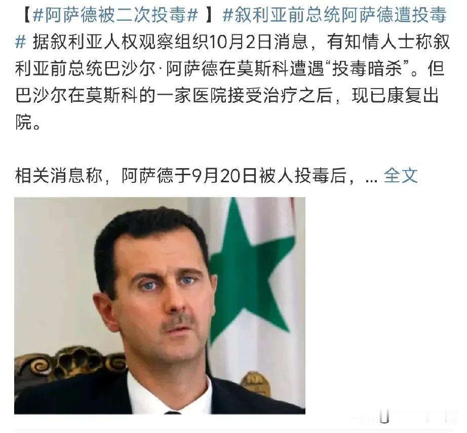 普京走了一步臭棋,阿萨德出事了!你能猜到,阿萨德竟然在俄罗斯保护下,中毒了,其