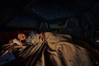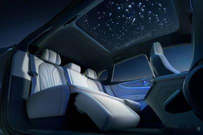 全球首发“浩瀚星空顶”,在LV分区调光天幕中嵌入500颗独立星粒,厚度仅增加1毫米,不影响空间与视野。用户可一键点亮专属星座,并支持迎宾、节日彩蛋等场景模式,同时具备87%的能量隔绝与近100%的紫外线阻隔能力,兼具美观与实用性。该配置以往多见于百万级豪车,可通过后排控制屏调整样式,将车顶化作“流动的星空画卷”。