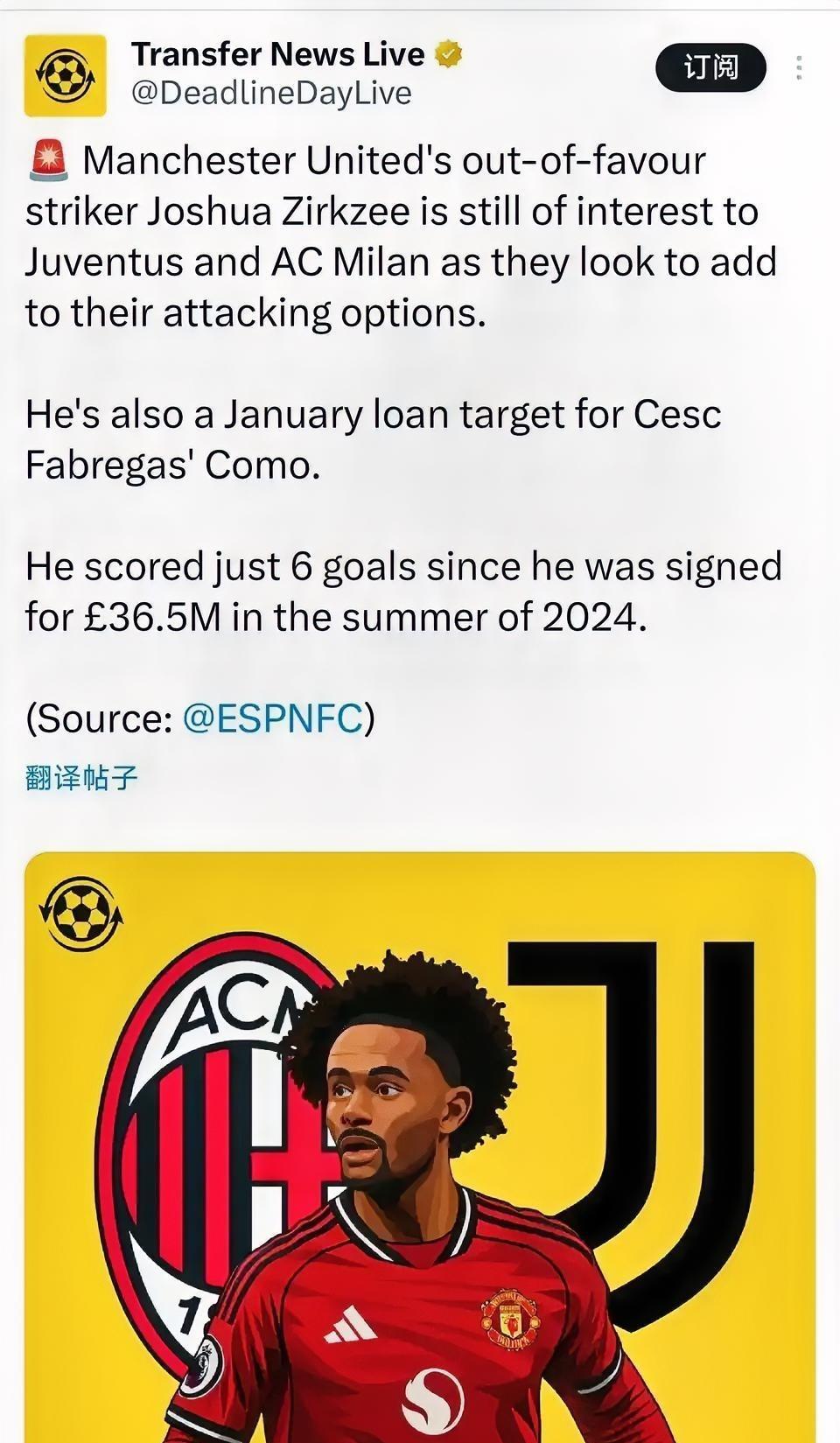 曼联齐尔克泽!米兰、尤文图斯与科莫俱乐部均对曼联荷兰前锋齐尔克泽感兴趣,他们都希