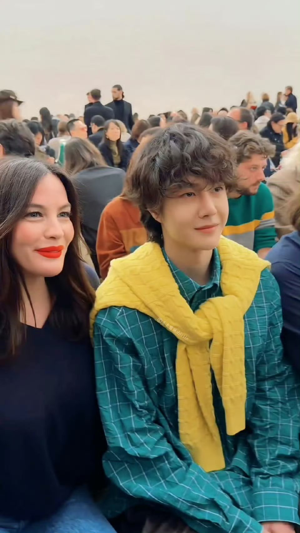 王一博座位被安排在品牌CEO与丽芙·泰勒中间。东方精灵王子与西方精灵公主的破壁同