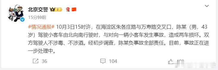 陈震车祸事件不涉及毒驾醉驾事故发生,交警已经定责,该咋处理咋处理,可以退下了[d
