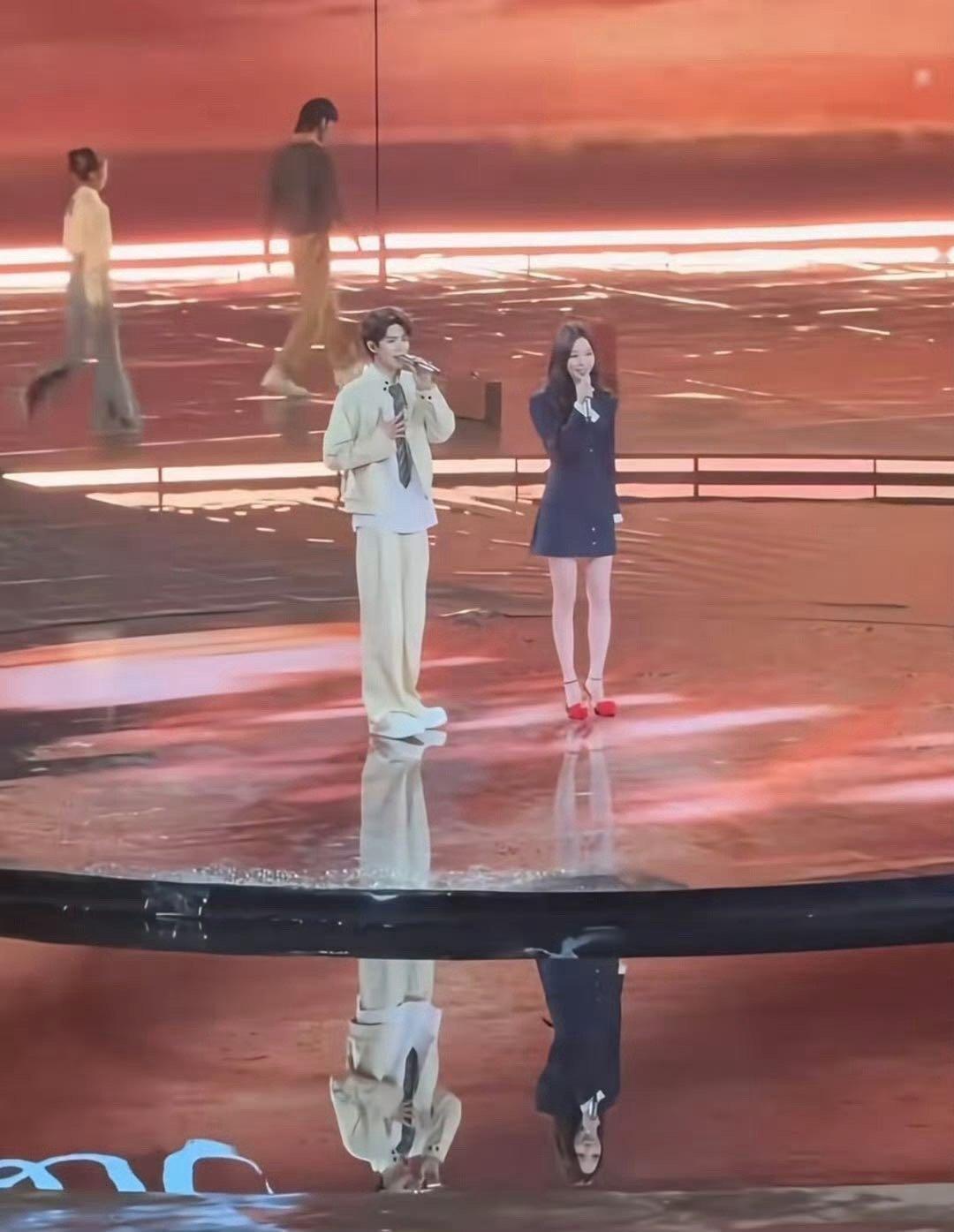 王珞丹的湖南中秋晚会舞搭档青年演员罗一舟献上亲情主题表演,造型适配度拉满,身高差更是成视觉亮点。晚会在漳泽湖搭起山水舞台,搭配AR光影特效,两人唱演实力在线,彩排已氛围感爆棚。