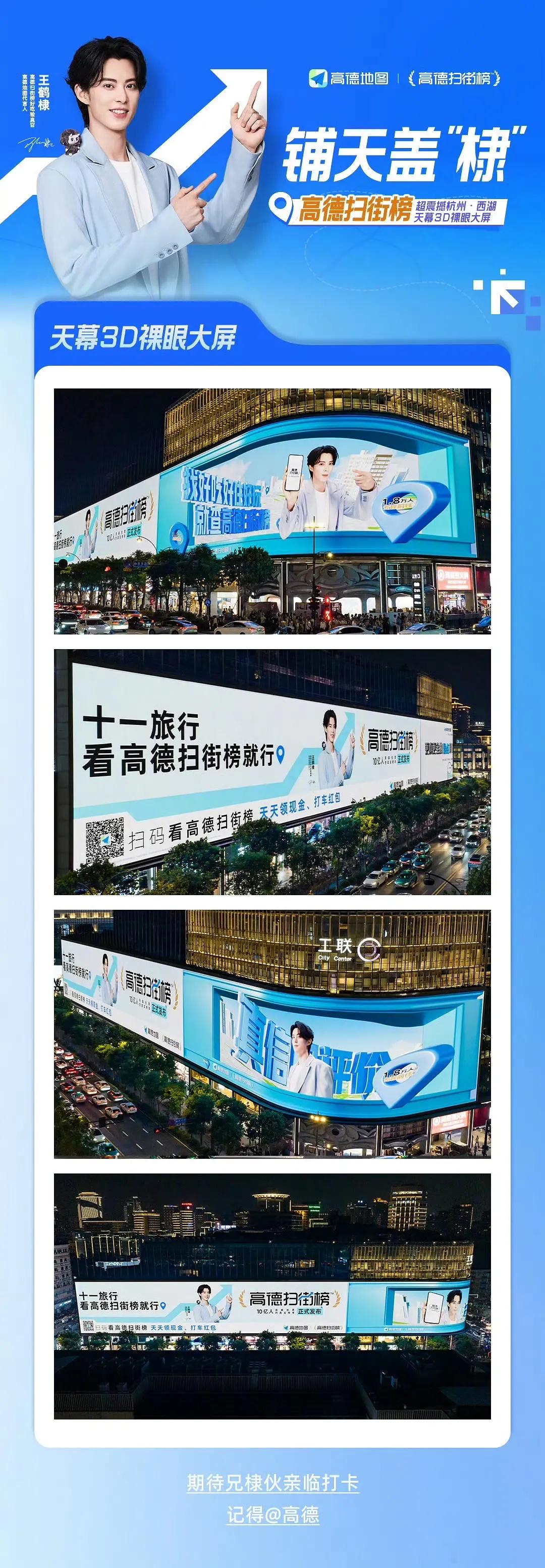 今年国庆➕中秋8天长假,这种热门时段品牌霸霸为王鹤棣投的户外投放好多啊,形式还多