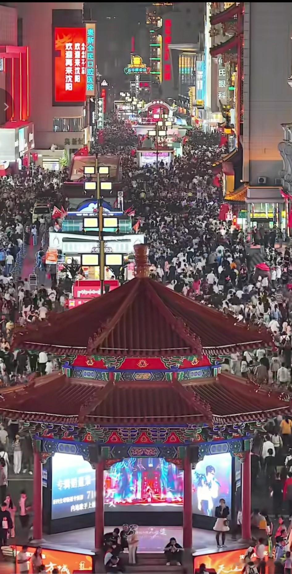 国庆节沈阳火了, 沈阳中街据说有一亿人, 人山人海气氛热闹, 这是不是都去那里旅游了, 突然觉得中国又有人了, 平时都没啥人的中街直接被挤爆了, 成为了亚洲第一步行街, 看来平时都是上班出不来, 大家国庆节都去哪玩了? 沈阳中街商圈 中街逛街 沈阳中街打卡点 沈阳方城中街