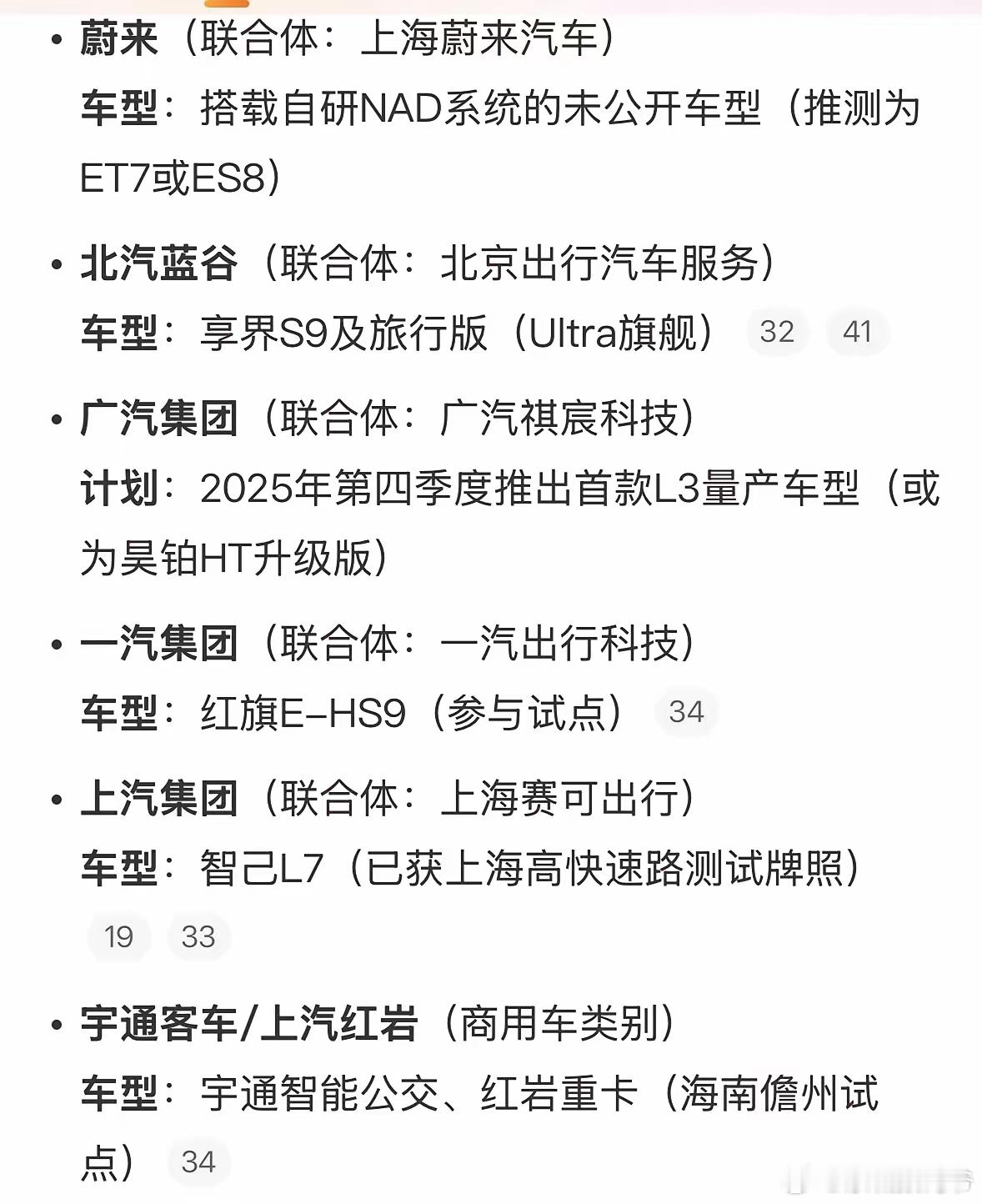 工信部联合公安部等四部门公布首批L3级自动驾驶试点名单!