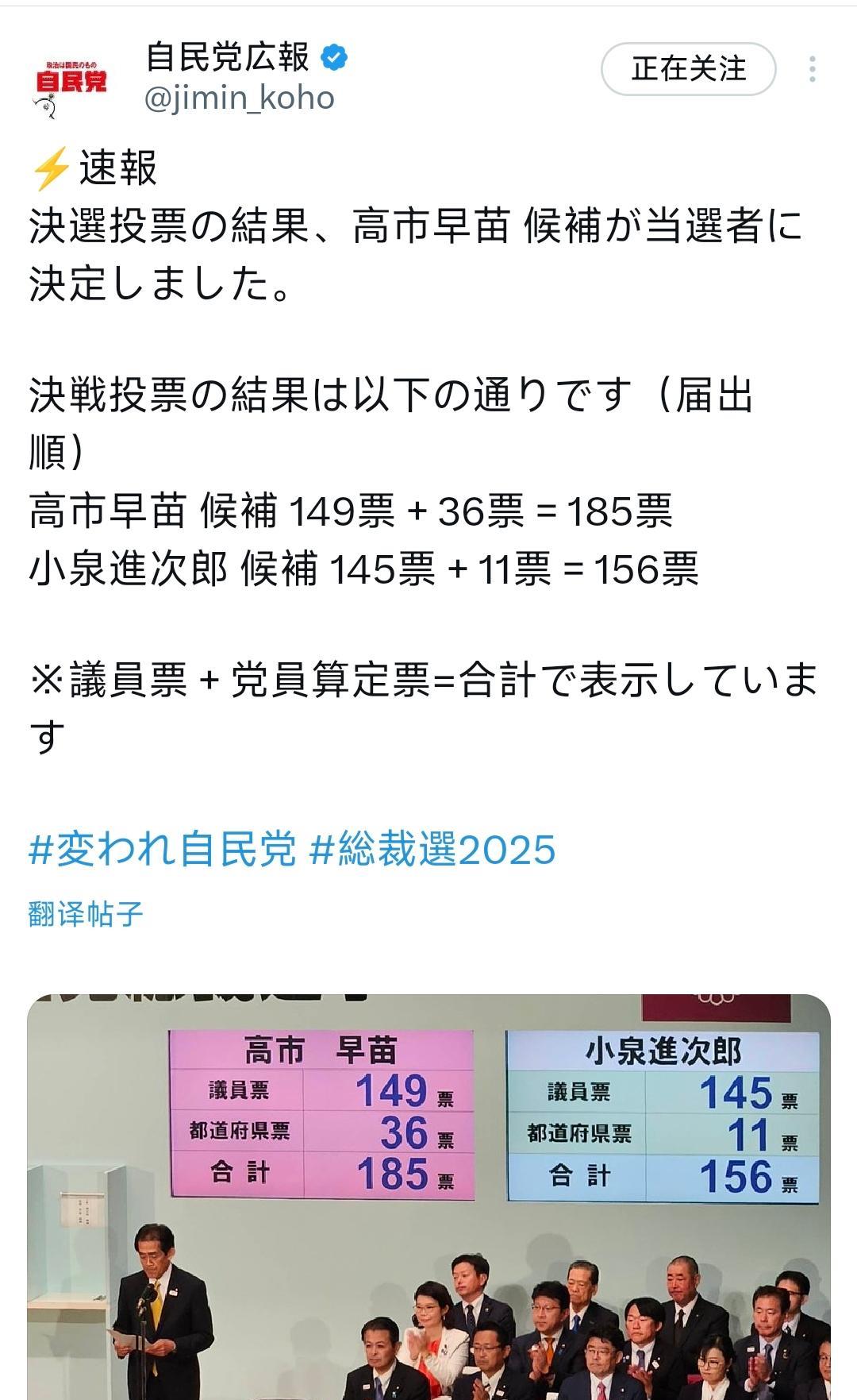 最新消息:被视作女版“安倍”的日本极端右翼分子高市早苗,在自民党总裁选举中,以1