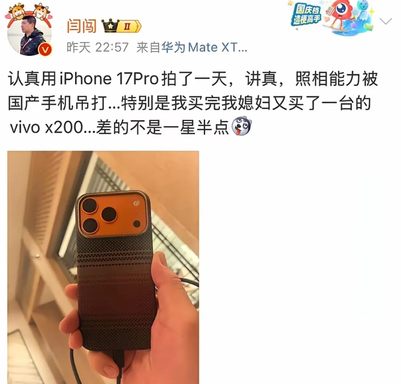 闫闯又出来搞事情了,前脚说了和小米决裂,后脚又开始脚踢苹果,跪舔ViVo,这谁受的了啊?