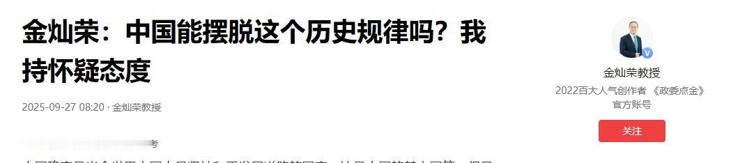 金灿荣在今日头条发文称:中国要实现崛起,未来必然需要在国际社会树立自身的制度与规
