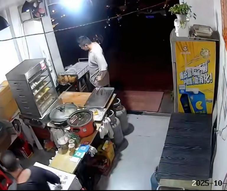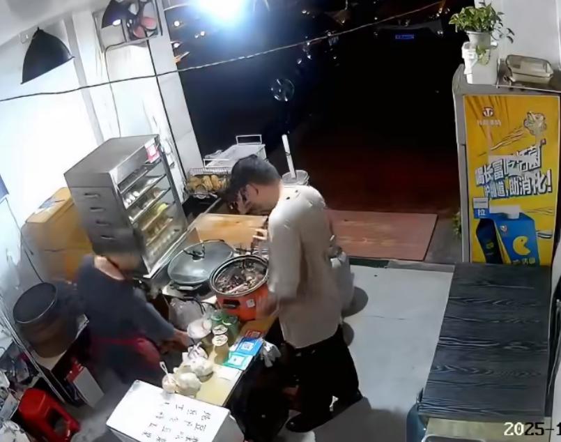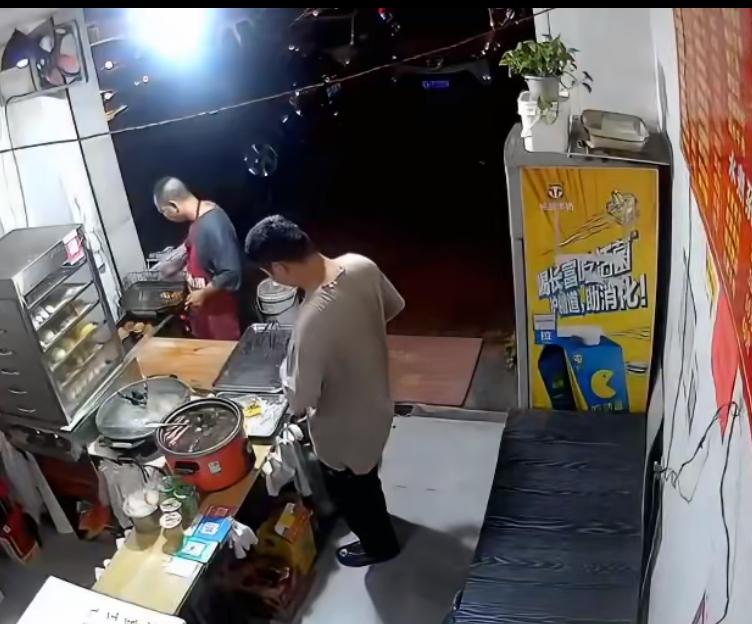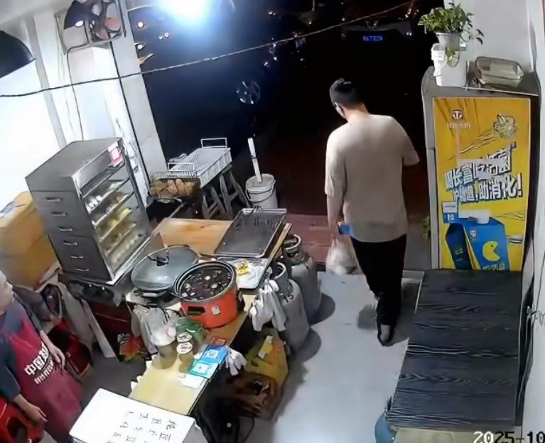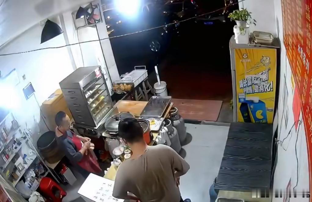 清晨的早餐店,福建宁德小伙买了35块早餐假装扫码跑了,老板时候看监控喊话小伙回来