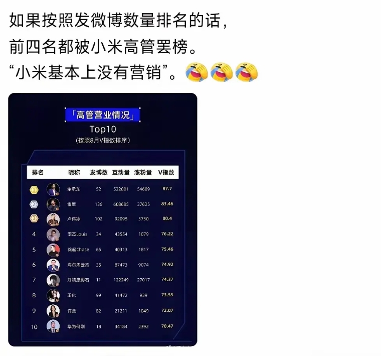 真无语了, 小米就这么不让人待见吗? 发个微博也被人喷?不是我说,发微博又不要钱,总比请个大明星划算吧,不知道你们为啥这么想,搞不懂,这免费的干嘛不用,其他的厂家也可以发也可以搞,微博又不是给雷军小米一家发,大家都可以发啊,你们这是没喷的了,找不到点了? 把明星费用省下来,优惠给老百姓,这不更好吗?不像某个车企,无论娱乐圈、体育圈,明星都快请遍了!