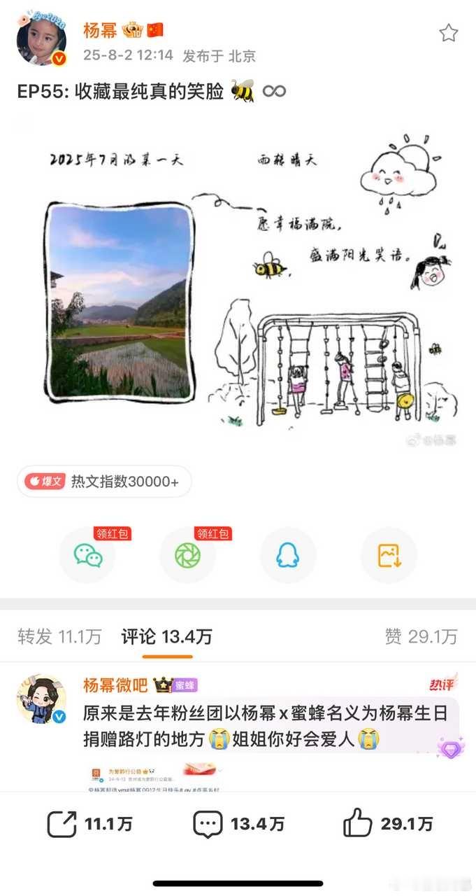 粉丝与偶像之间的双向奔赴就是这样吧!杨幂以粉丝之名做公益,杨幂粉丝也以杨幂和蜜蜂之名做公益,太有意义了!好有爱❤️