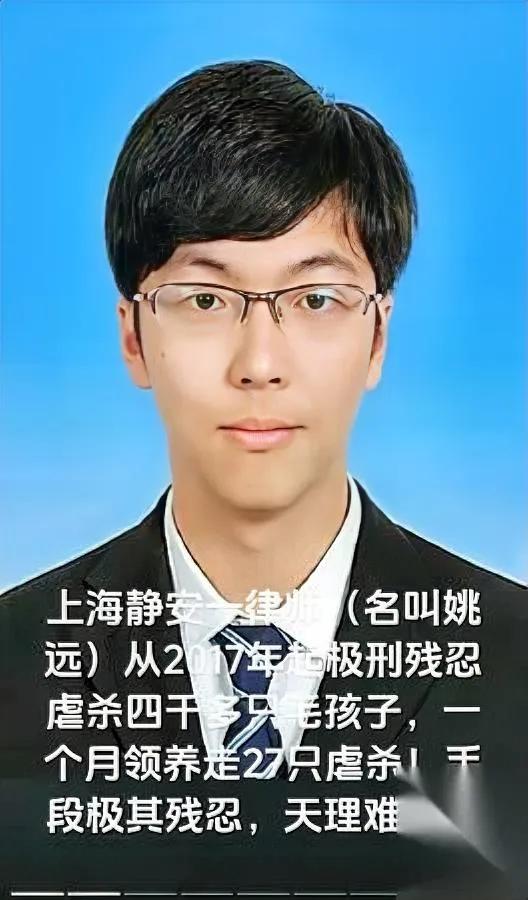 记住这张脸!上海律师 竟用极端手段虐杀四千只猫 这位戴眼镜的斯文男子叫姚远,顶着律师的体面身份,却干着人神共愤的事——整整虐杀了近4000只小猫!小区里的猫几乎被他杀绝,而他的目的竟是把虐杀视频传到外网换钱。当法律从业者沦为生命虐杀者,当同情心被血腥欲望吞噬,这种用无辜生灵换私利的行为,早已突破人性底线。 现在姚远处于失联状态,但法网恢恢,他真以为躲起来就能逃避制裁吗?虐杀成瘾的背后,暴露的是对生命权的极端漠视,更是对公共道德的公然挑衅。这样的人,必须受到法律严惩,也该被社会永远唾弃。 大家觉得,面对这种挑战人性的行为,我们该如何推动正义更快降临?