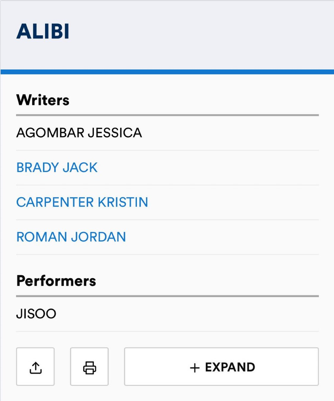 JISOO已完成新歌《Alibi》的曲目注册,并通过多种渠道透露个人即将回归乐坛的信号。