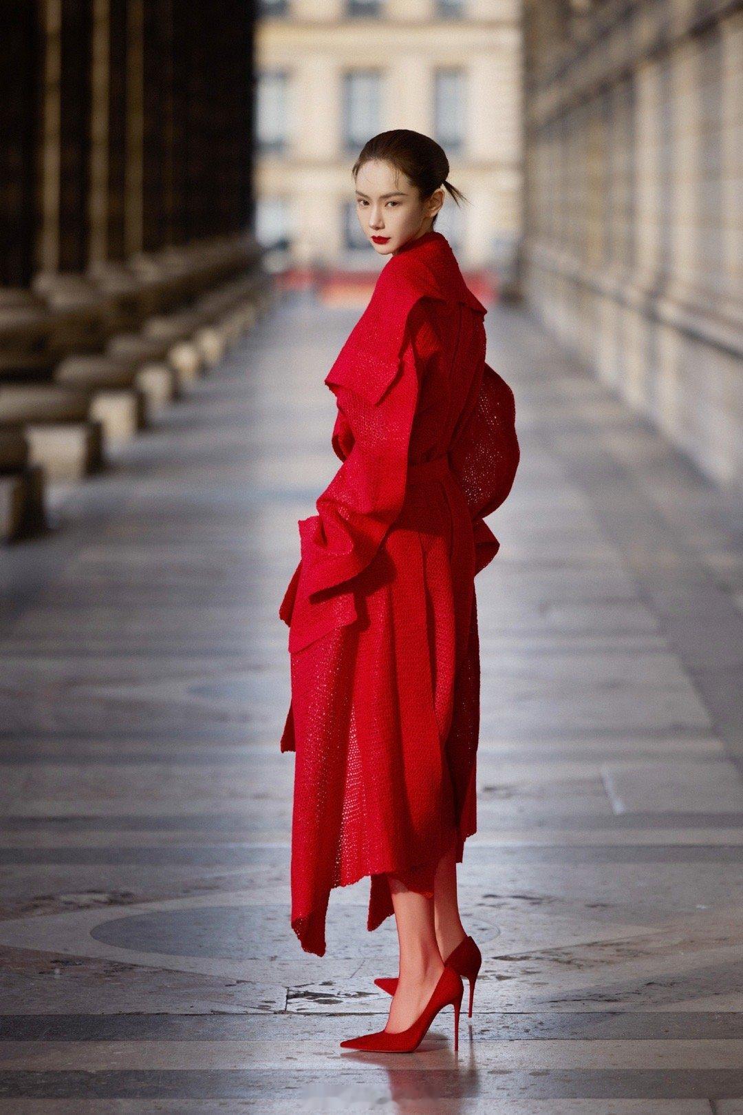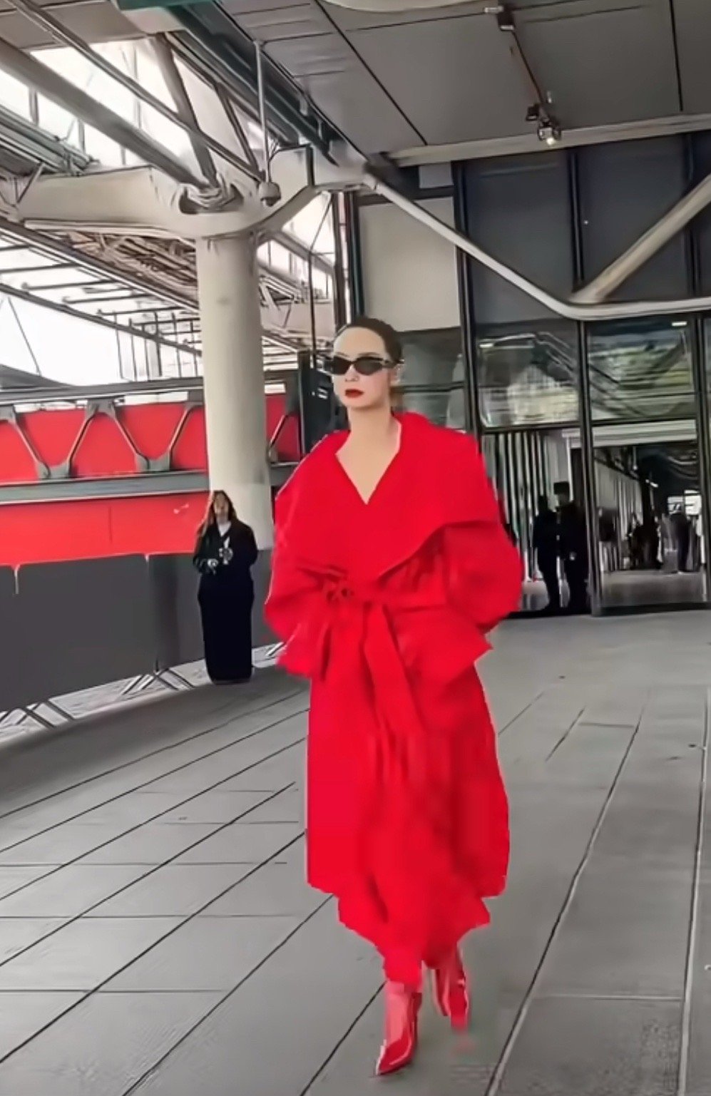 戚薇鲜红战袍 巴黎时装周的亮色是戚薇给的!鲜红战袍配红丝袜高跟鞋,冷白皮搭简约背头,夺目又高级,时尚表现力拉满,姐姐审美太能打!