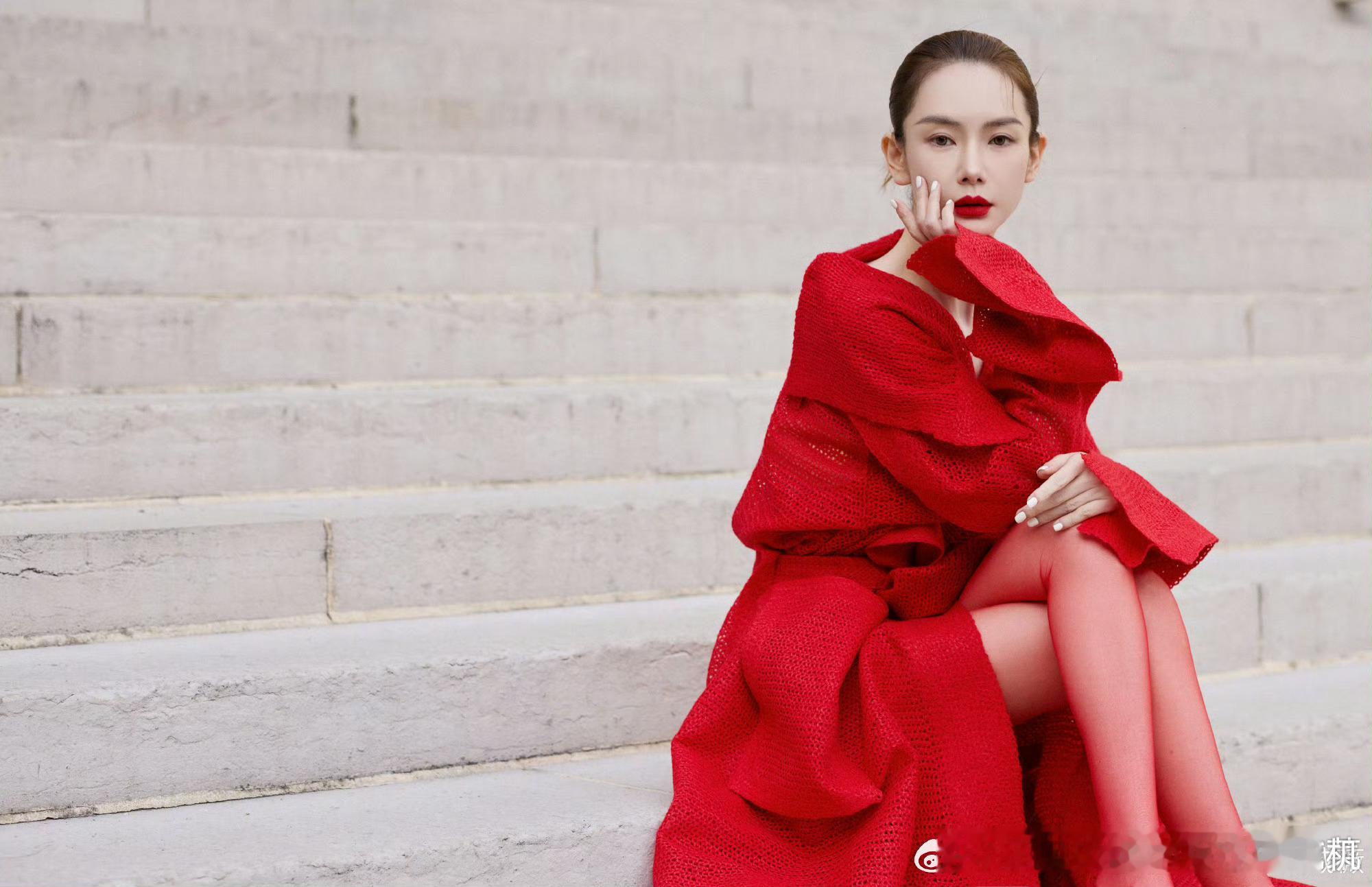 戚薇鲜红战袍戚薇这一身鲜红看秀战袍,真的把气场拉到满格。正红色和她的冷白皮完美