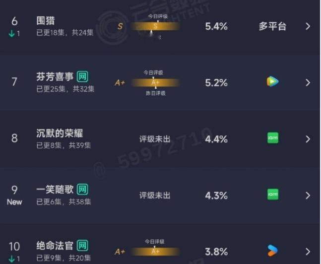 李沁《一笑随歌》算是低开! 首日热度6987,首播云合占比4.3%,播放量900多万,赵露思《许我耀眼》云合占比37.9%,播放量超8000万,热度破了32000,基本吸干大盘,这部剧还有上涨空间,剧情还没到最高能的时候。