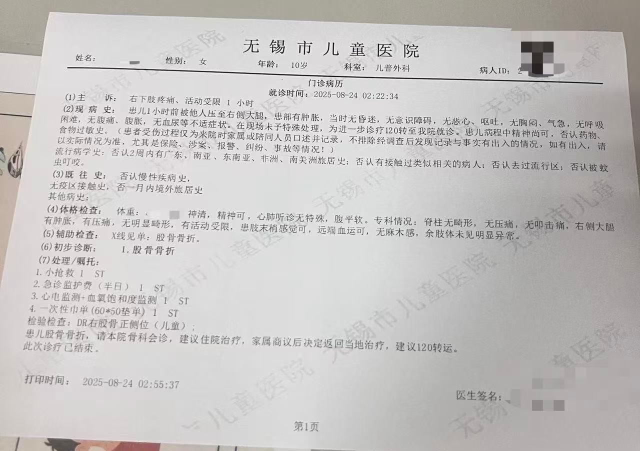 10月4日,无锡站相关工作人员向记者表示,据其了解,朱女士的女儿确实受伤了,车站工作人员为朱女士提供了协助。10月4日,上海铁路公安处无锡站派出所告诉记者,事发当天确有接到朱女士报案,具体情况不便接受采访。同日,记者拨打当事男乘客的电话,对方未接听。