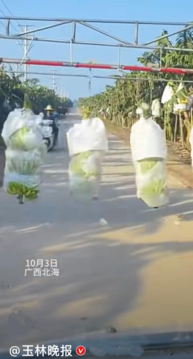 太现代化了[赞] 网友驾车途中,在广西偶遇“香蕉专列”,十一在高速上没堵车,可被“香蕉专列”堵了…… 香蕉专列是啥?你见过吗?我可是没见过…… 原来是索道上方安装滑轮,下方连接悬钩,将砍下的香蕉挂于 悬钩后,通过人工牵引运输至指定地点,既能避免传统人背马驮导致的挤压伤,又降低人力成本,提高运输效率…… 跑起来还挺漂亮呢[赞]