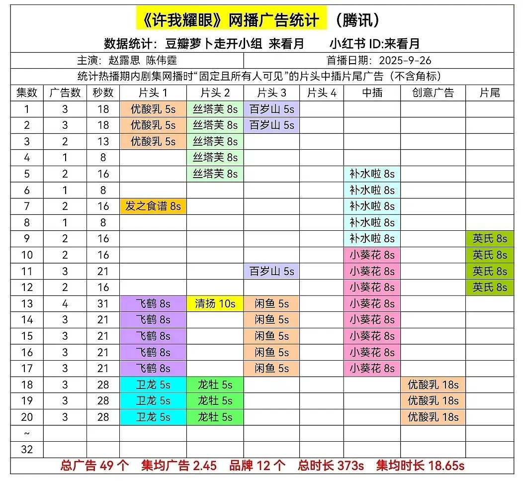 优酸乳去年给永夜投了43s的创意广,给许我投了18s的创意广🤣卫龙也是,给永夜15s,许我5s