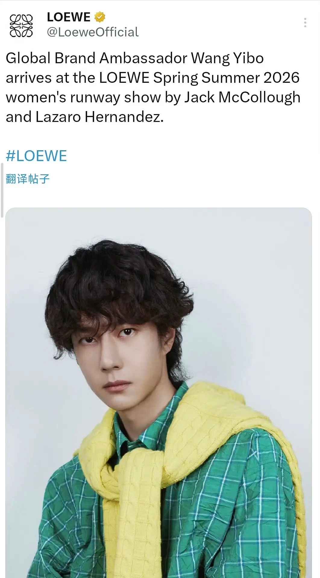 Loewe官推发布全球代言人王一博,【压轴】出场看秀,【首位】认领,超季【定制】,嘿嘿,真星光十足巨星排面~