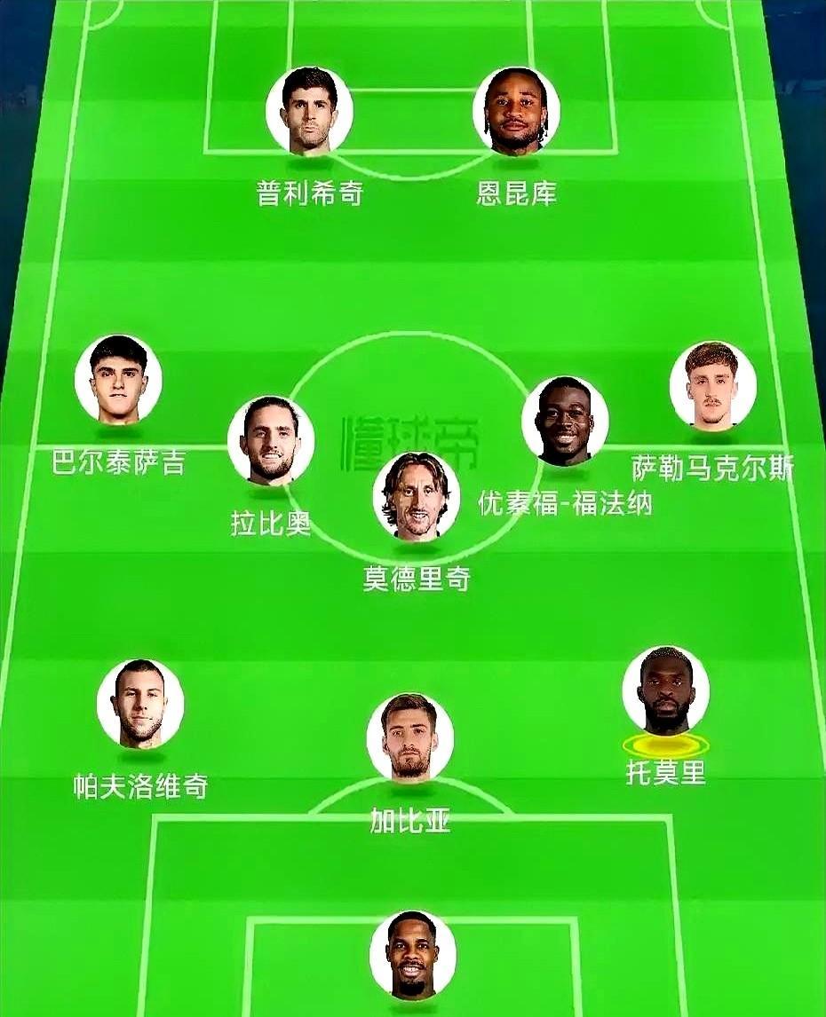 现在的米兰队里,门将迈尼昂是高级货,莫德里奇、拉比奥特、普利西奇是高级货,加上受