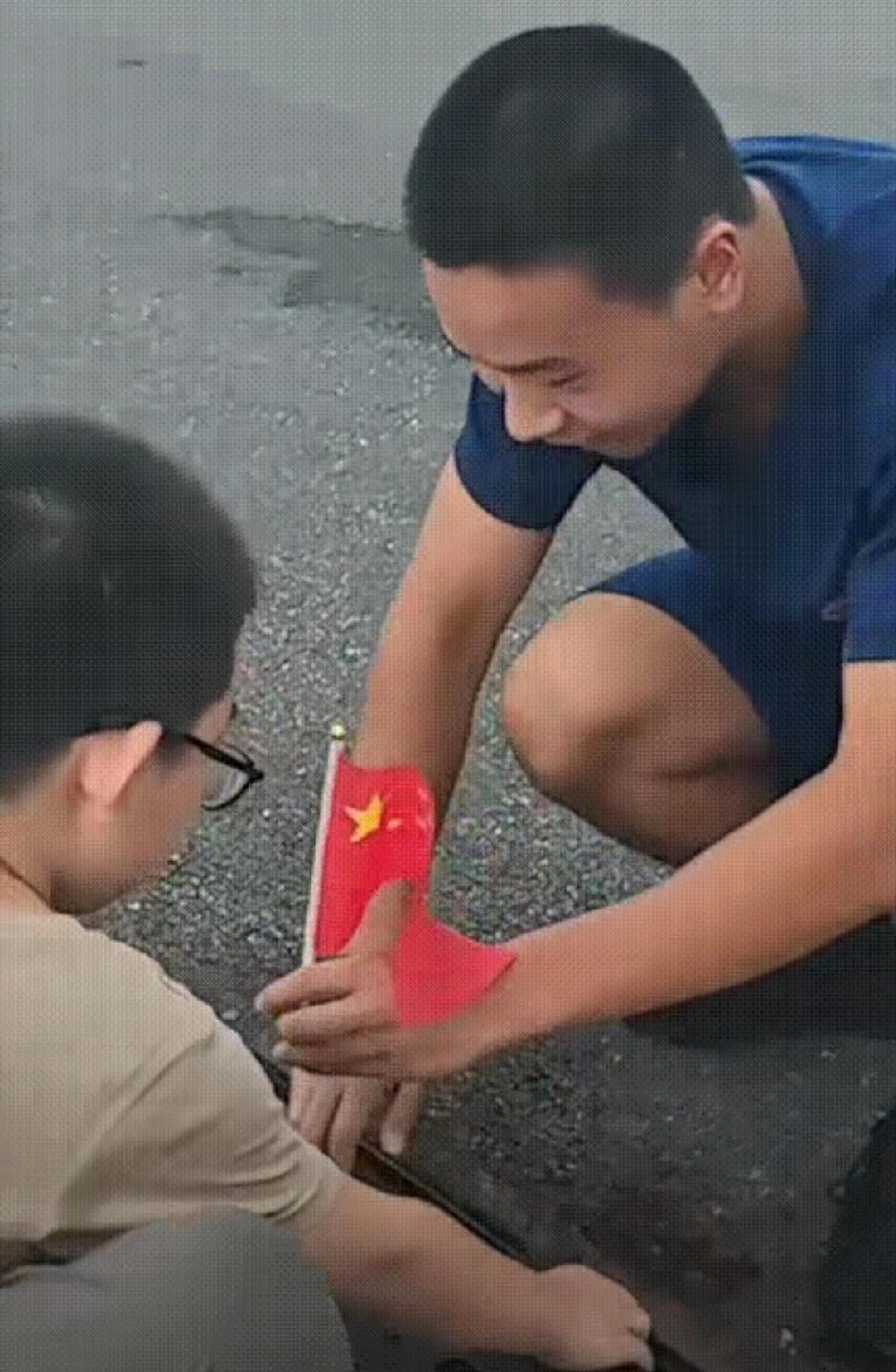 江西吉安这俩娃,真的把“爱国”诠释得太戳心!消防员出警回来,看见他俩撅着屁股蹲在路边,还以为在救小动物,凑近一看,居然在勾排水口里的五星红旗 。 消防员赶紧掀开井盖,趴在地上把国旗捡起来,小心翼翼在衣服上擦干净,才递给孩子。这一幕看得人心里暖暖的,娃们可能说不出啥大道理,但“不想国旗脏着”的举动,比任何口号都实在 。 其实爱国从不是宏大的事,就藏在孩子蹲在路边的身影里,在消防员擦国旗的衣角上。这种不加修饰的真诚,才是最动人的力量 。 你身边有没有过这样温暖的小瞬间?看到这样的场景,你会不会也觉得心头一热 ?