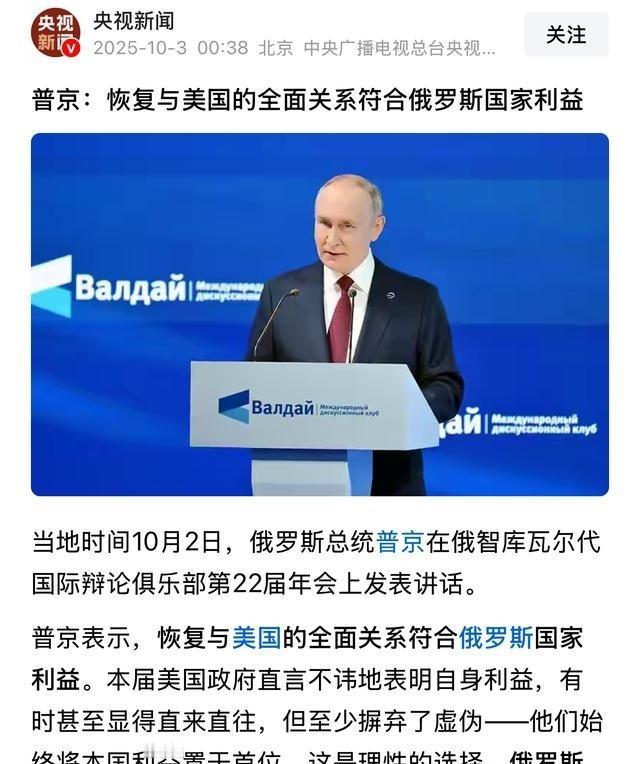 俄罗斯又犯“战略天真”的错误了?横跳的姿态总是收不起来。如果台海有战事,或我们内部有变革,俄罗斯肯定会重新定义俄美和俄中关系。这是俄的橄榄枝:如果美国有信心在关键冲突中赢得与中国的斗争,而且在乌克兰问题上做出关键让步,届时俄罗斯也可以改弦更张,重修秦晋之好。 说起俄罗斯这几年在国际棋盘上的走位,总让人觉得有点儿像老江湖在街头卖艺,表面花里胡哨,骨子里却总露怯。2022年俄乌冲突一打响,普京那边本以为能速战速决,拿下基辅后逼乌克兰签城下之盟,谁知拖到现在三年多,战场上泥泞一片,经济上制裁层层加码,俄罗斯的国际空间被挤得喘不过气。结果呢?莫斯科开始玩起了平衡术,一边和中国抱团取暖,能源管道、中亚合作搞得热火朝天;一边又试探着给美国抛眼色,希望特朗普上台后能松口子,缓和乌克兰那边的压力。这不就是典型的战略天真吗?以为自己还能在中美两大块之间左右逢源,实际上一脚踩空,就得栽跟头。 你看,俄罗斯的领土横跨欧亚,资源富得流油,军事实力也还在联合国安理会常任席位上摆着,可这些年真金白银的底子被战争磨得七零八落。2025年上半年,俄罗斯社会保障支出比前一年砍了16%,这笔账直接算到国防头上,普京得咬牙顶着。国际上,北约东扩、北约峰会一开,欧洲那边防线拉得死紧,美国的军援源源不断流向乌克兰。俄罗斯呢?表面上和中国签了无上限伙伴关系,实际操作中也得掂量掂量,北京对莫斯科的支持更多是道义和经济层面的,不会轻易卷进军事泥潭。俄罗斯这时候开始横跳,2025年8月的外交信号就挺明显:通过加密渠道给华盛顿递话,如果美方在乌克兰问题上让一步,承认克里姆林宫的红线,那俄方可以考虑调整对华姿态。说白了,这就是想借美国的力,撬动自己卡住的局面。 但这横跳的姿态收不起来,根子还在俄罗斯自己的算盘打得太精。历史上,苏联解体后,俄罗斯就总爱玩这种两头下注的把戏。叶利钦时代想西倾,普京上台后又转东顾,可每次都碰壁。拿最近来说,特朗普二度入主白宫后,美俄关系确实有回暖迹象。3月份,特朗普公开表态要推动乌克兰和平协议,站到普京一边,颠覆了拜登时期的强硬线。这让莫斯科尝到甜头,觉得美国内部撕裂,国会山那帮人吵得不可开交,正是下手的好时候。结果,阿拉斯加峰会一谈,普京和特朗普隔着桌子聊了乌克兰东部战线,还扯到印太主导权。联合声明含糊其辞,但幕后电报明摆着:俄罗斯在试水,如果美国能稳住台海那摊子事,俄方不介意在安理会投张中立票,甚至松动对华能源捆绑。可问题是,美国真会买账?特朗普的交易外交是出了名的,嘴上说让步,实际国会民主党那边抗议声浪高涨,街头游行焚烧他的画像,军队内部清洗军官的信件满天飞。俄罗斯这橄榄枝抛出去,等于把自己的弱点亮给对手看,战略上纯属自曝其短。 为什么俄罗斯总犯这种天真错误?说到底,是因为它高估了自己的筹码,低估了中美博弈的深度。俄罗斯是前苏联的最大碎片,影响力覆盖中亚、蒙古这些地广人稀的大国,国土面积占地球陆地两成多,这底子听着唬人,可实际资源被乌克兰战场锁死。2025年9月,顿巴斯前线俄军推进缓慢,经济报告显示石油进口商挨二级制裁,仓库物资堆积如山。反观中国和美国,谁都没到能单枪匹马管天下的地步。美国能力滑坡,特朗普上台大刀阔斧税改、移民墙,可社会撕裂加剧,民调城乡差距拉到30个百分点,变革成本高得吓人。中国这边,军备齐整,但其他领域接棒还得时间,全世界盯着呢,治理一松懈,各方就不服气。俄罗斯夹在中间,以为能渔翁得利,实际延缓了中美决战的节奏。肢解俄罗斯本身就能释放海量国际资源,中美分着吃都够嚼一阵子,何必急着你死我活?俄罗斯这横跳,只会让乌克兰战争继续旷日持久。 总的来说,俄罗斯的战略天真不是一天炼成的,它总以为大国博弈是零和游戏,自己能捡漏。2025年10月,乌克兰获首批付费武器,港口吊车卸集装箱,士兵检查弹药金属碰撞响。美国批准对俄能源目标情报,五角大楼卫星图指点坐标。俄罗斯经济压力山大,普京批阅中亚管道报告,工人焊接管线火花溅。横跳姿态收不起来,只会让莫斯科更被动。