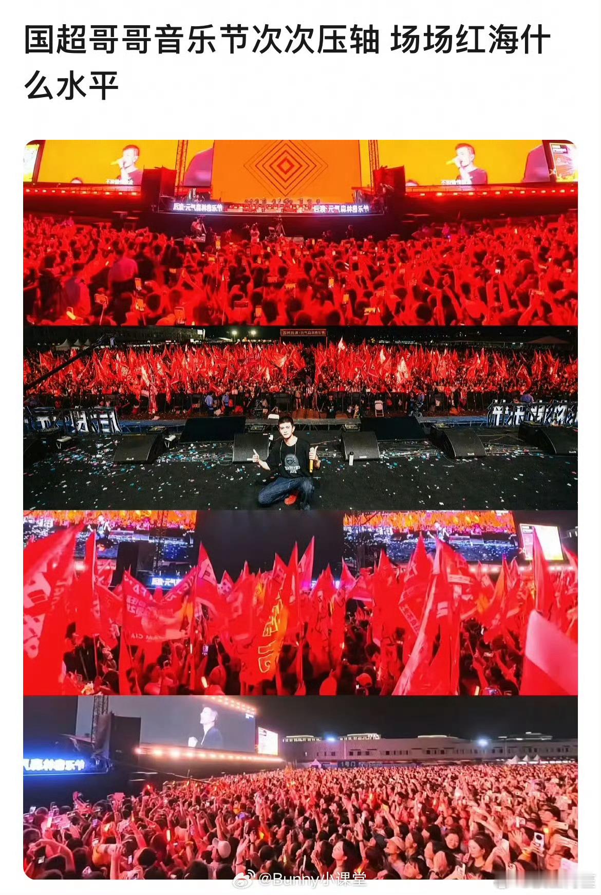 任嘉伦每次音乐节都是压轴出场,每次都是一大片应援红海,因为他参加音乐节就是主咖呀