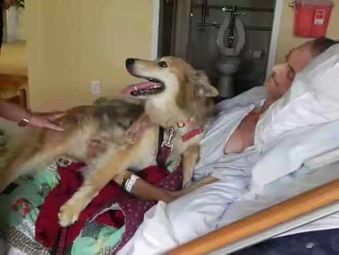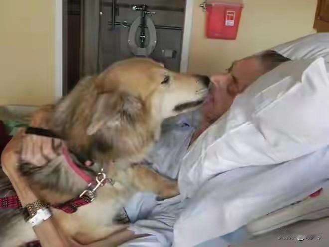 一位大爷很多年前养了一只狗狗,是从小奶狗开始养的,转眼间十来年过去了,狗狗老了,大爷地身体也每况愈下,这不已经到了弥留之际了。 而他也知道自己就快走了,于是就要求家属把狗狗带来,他要见狗狗最后一面。家属也非常配合,立刻把狗狗带来,和医院特别申请后,带到了他的面前。狗狗一见病入膏肓的主人,也是抑制自己的情绪,慢慢的趴在了主人地身边,轻轻地靠着主人让他抚摸自己。一人一狗其实早已成为了密不可分的亲人了。最终老人抱着狗狗永远的睡着了。不过他肯定是幸福的走的!