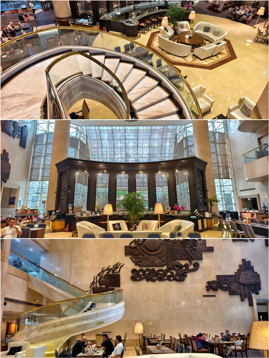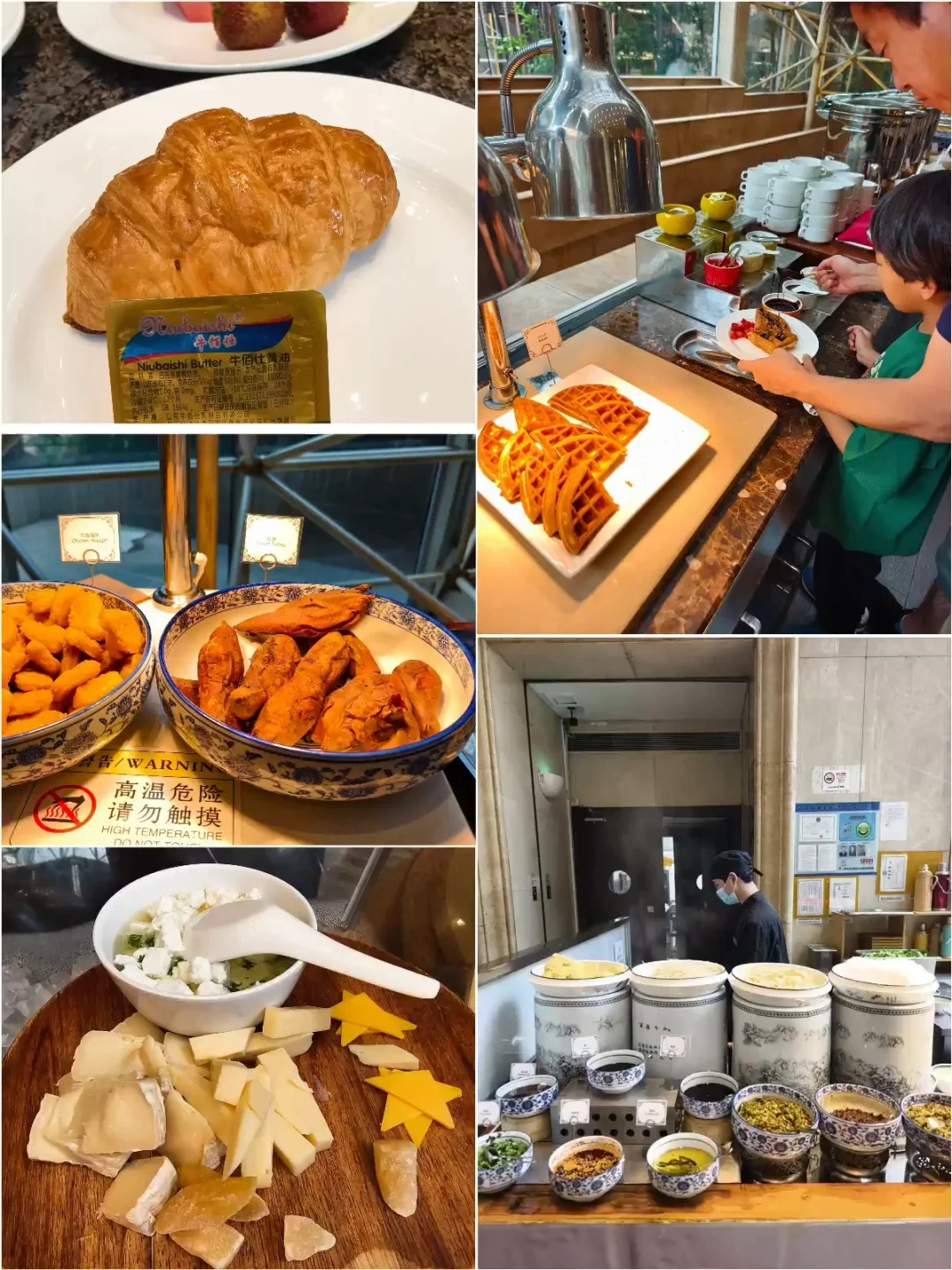 一🔥、概览 | Overview 上海齐鲁万怡大酒店,2001年开业,周边有世纪汇、九六广场等多个商场。酒店大堂是标准的老式商务风设计,但挑空大堂还是蛮有气势的,那个年代就设计有网红旋转楼梯了。这酒店老外住客很多,甚至有国外航空公司的机组人员入住。 没有欢迎水果,给了两张饮品券,以前是星巴克,现在换成了皮爷,不是皮爷门店,只是用了它家的豆子。停车券也还是纸质的。(P1~P6)。 二🔥、客房 | In Room 酒店格局是塔楼设计,中间是电梯井,客房均匀分布在每个方向。 这次入住的是行政大床房,说是新装修过的,那也是2011年的事了,瓶装水是碧纯,Philips电视机、York空调控制器都是古董级别的,窗帘居然是纸质推拉式的,一把椅子更是破损不堪。(P7~P9)。 以前还住过他们套房,是酒店初代套房,完全是老干部招待所风格。(P10)。 三🔥、餐饮 | Dining 因为节假日的关系,16楼的行政酒廊关闭,hh和早餐都在G层的辣椒屋咖啡厅就餐。 酒廊每天下午四点到晚上10点,HH是5点半到7点半,在万怡纷纷关酒廊的当下,🈶酒廊已很是厚道,菜品也还算丰盛。 来吃早餐的基本也是老外,早餐有山东特色的糁汤+脆酥烧饼+香酥煎饼,水果还有荔枝。黄油也不是常见的安佳,而是山东的‌牛佰仕黄油。(P11~P16)。 四🔥、设施 | Facilities 酒店没有泳池,健身房在四楼,设施大多也是老款的了。G层还加了个匹克球场地‌。(P17~P18)。