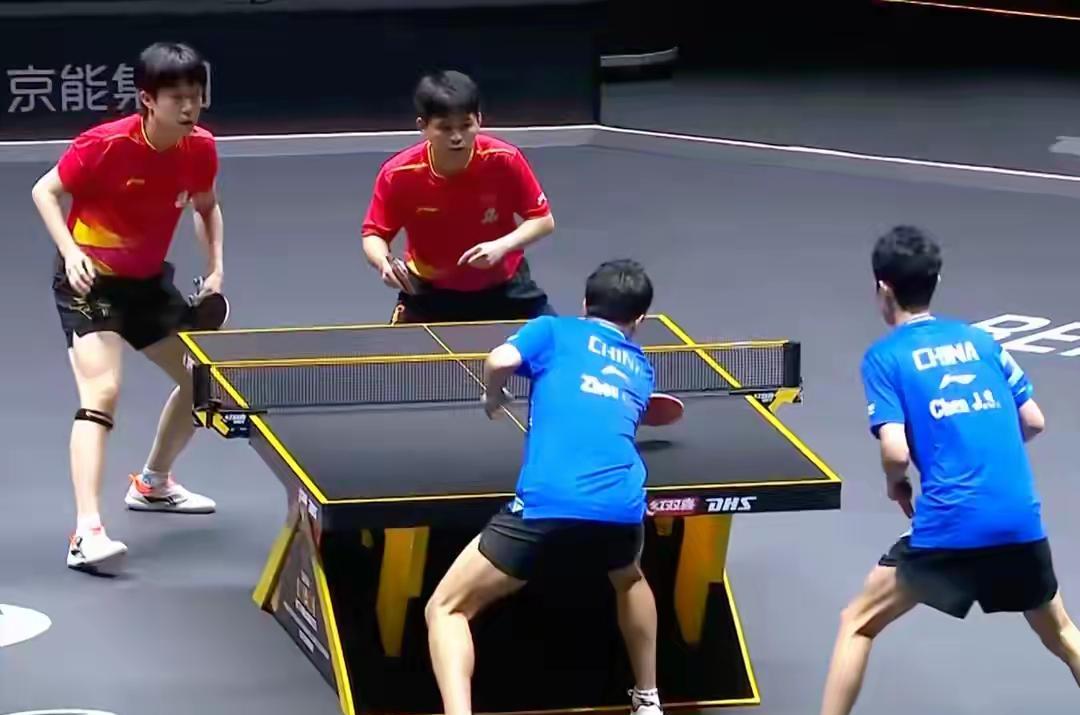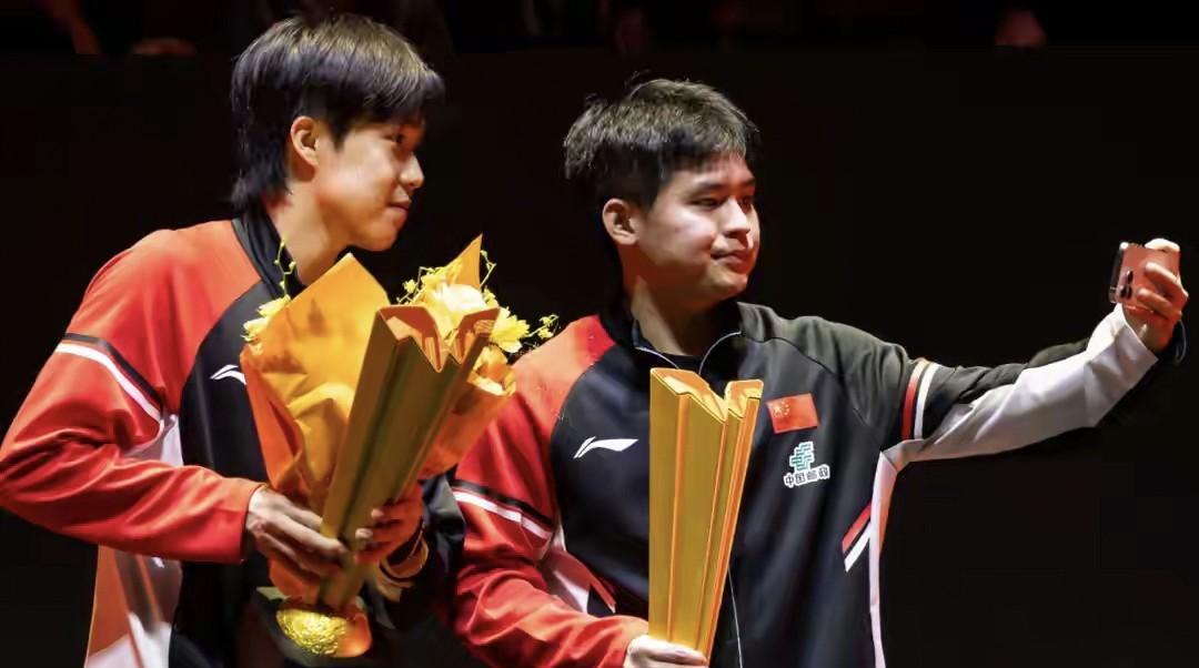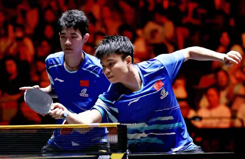 刚刚结束的WTT中国大满贯男双决赛,林诗栋/王楚钦以11-8、13-11、11-7直落三局击败队友周启豪/陈俊菘,夺得冠军,中国队包揽了三项双打的冠军,王楚钦继混双与孙颖莎夺冠后,又拿到本届赛事第二冠,两人也分别晋级到了男单半决赛。