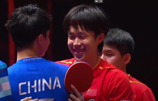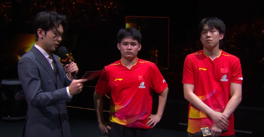 王楚钦/林诗栋拿下男双冠军的采访, 我没搞明白, 明明这主持人会英语和汉语, 他为什么配个女翻译呢?